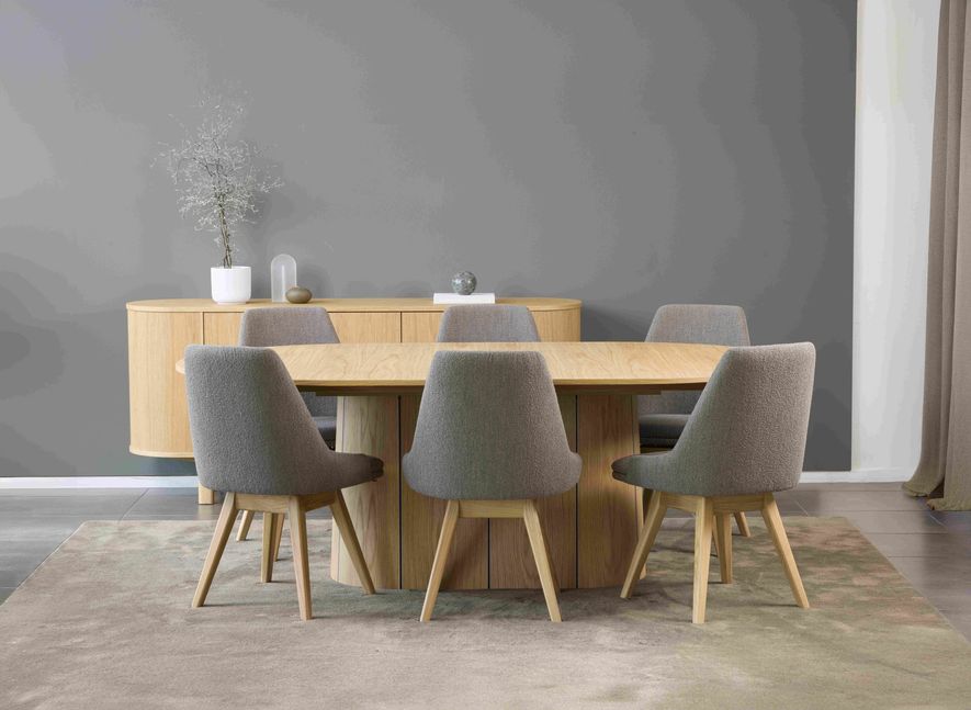 SM115 van Skovby is een slimme en unieke eettafel die moeiteloos meebeweegt met het dagelijks leven en onverwachte plannen. Dankzij het uitschuifbare tafelblad kan er in een handomdraai extra zitplaatsen gecreëerd worden, ideaal wanneer er spontaan gasten blijven eten.