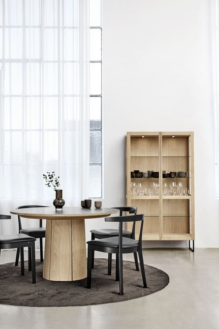 SM33 is voorzien van een uniek uitschuifsysteem waarmee je de eettafel eenvoudig van 6 tot 9 personen uitbreidt. Het lijnenspel van het tafelblad komt terug in de tafelpoot, voor een speels geheel. Uitschuifbare eettafel SM33 past goed in een Scandinavisch of industrieel interieur. Naast getoonde variant is SM33 ook verkrijgbaar in walnoothout of eikenhout in diverse olie, zeep en lakafwerkingen.
