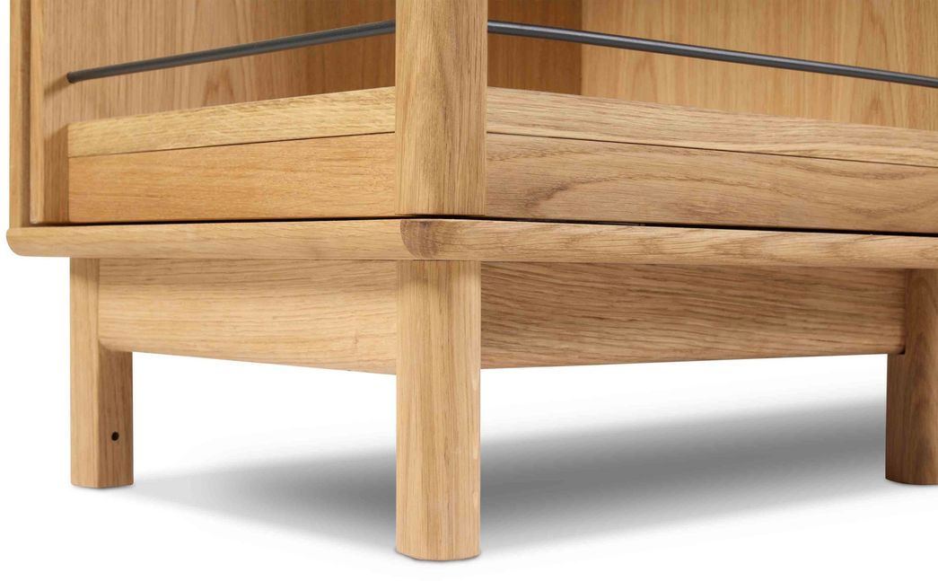 De zijkasten zijn volledig naar wens samen te stellen: kies voor gesloten deuren voor een rustige, minimalistische uitstraling, of ga voor glazen planken om een royale, open look te creëren waarin woonaccessoires tot hun recht komen. Voor een speelse uitstraling kan er een gesloten zijde met een open vak gecombineerd worden voor een opvallend asymmetrisch design.