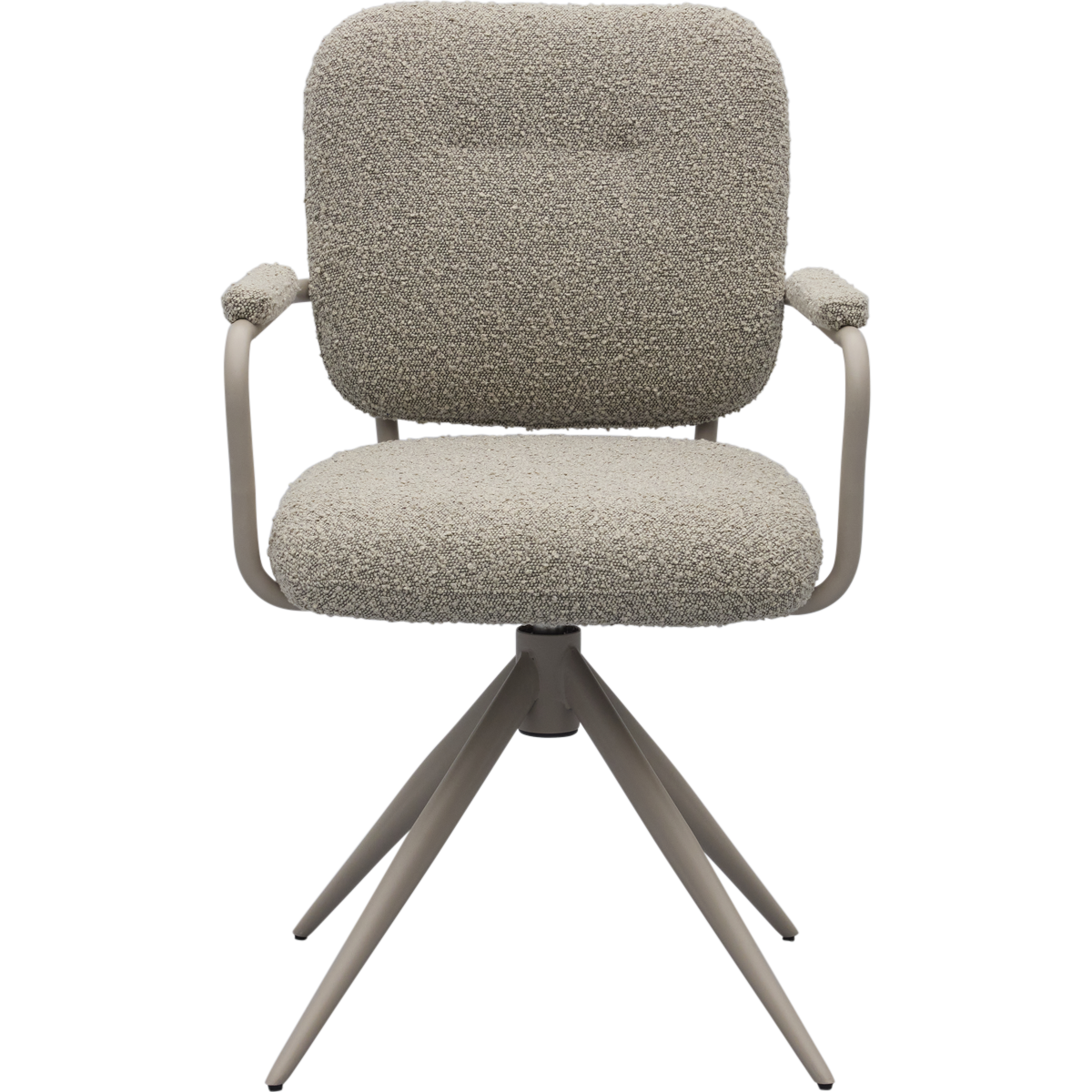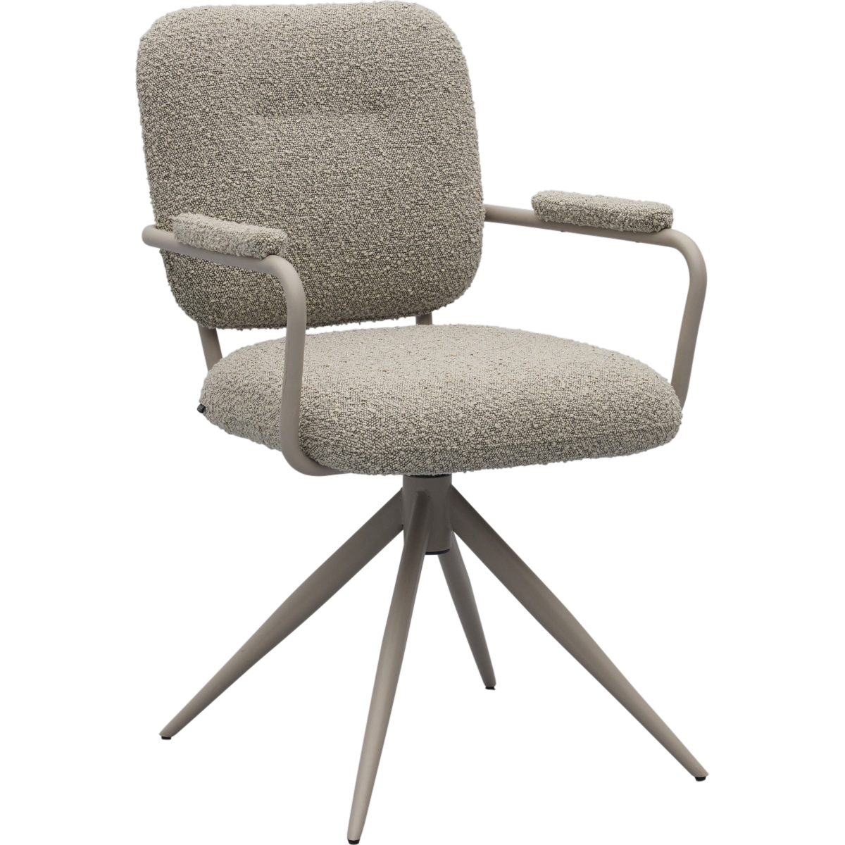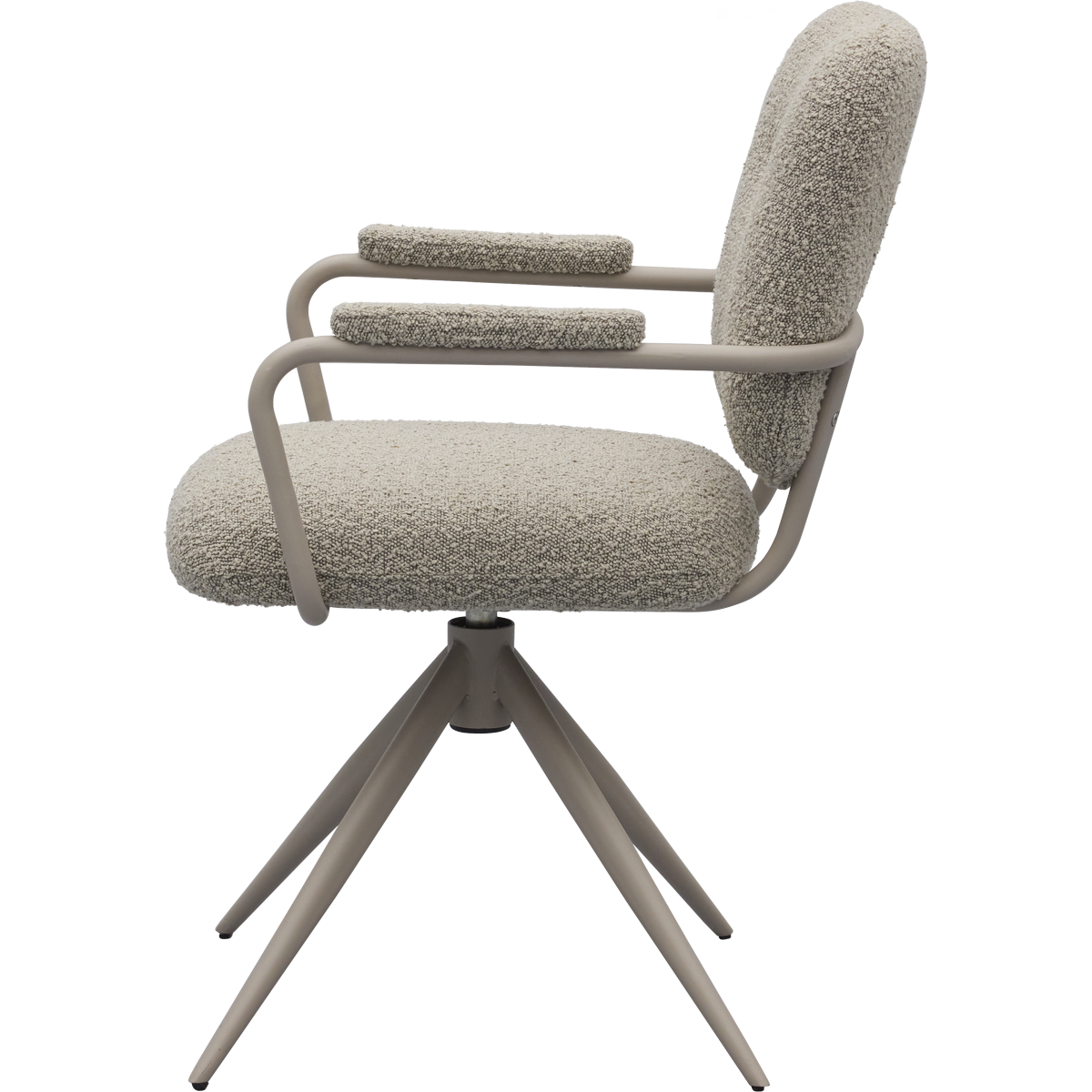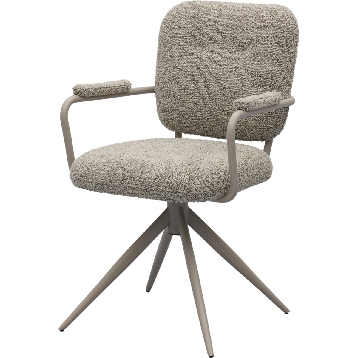 Eetkamerstoel Cielo van Trendhopper brengt een Scandinavische sfeervolle uitstraling naar de eethoek. De stoel is bekleed met een bouclé stof in een warme toffee bruine kleur, wat zorgt voor een zachte en uitnodigende look. In combinatie met het taupekleurige onderstel ontstaat een rustig en eigentijds geheel dat moeiteloos aansluit bij diverse interieurstijlen. De afgeronde vormen en subtiel beklede armleuningen dragen bij aan een comfortabele zit en een harmonieus geheel aan tafel.