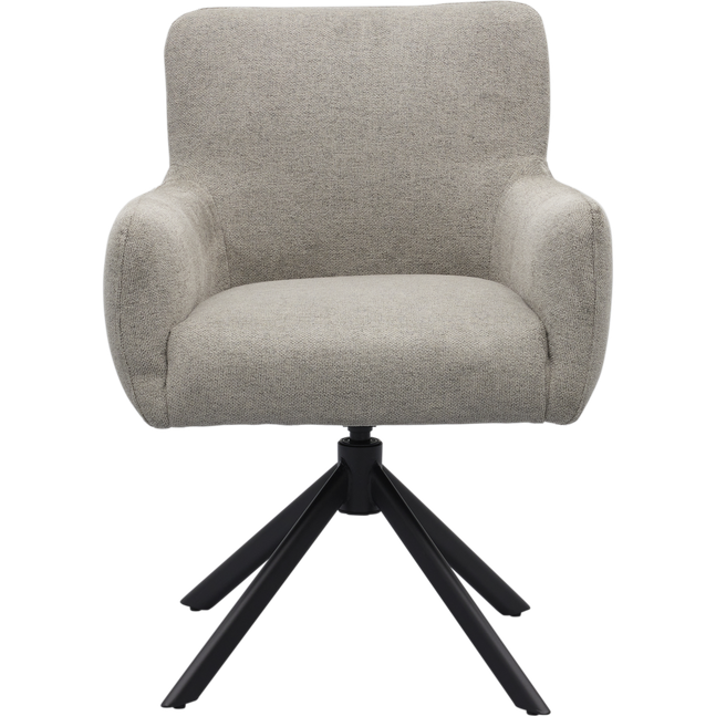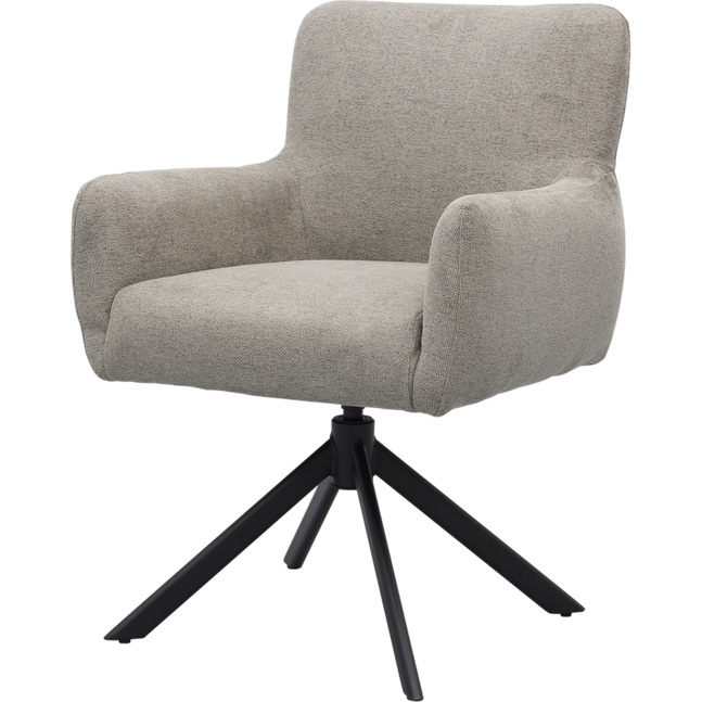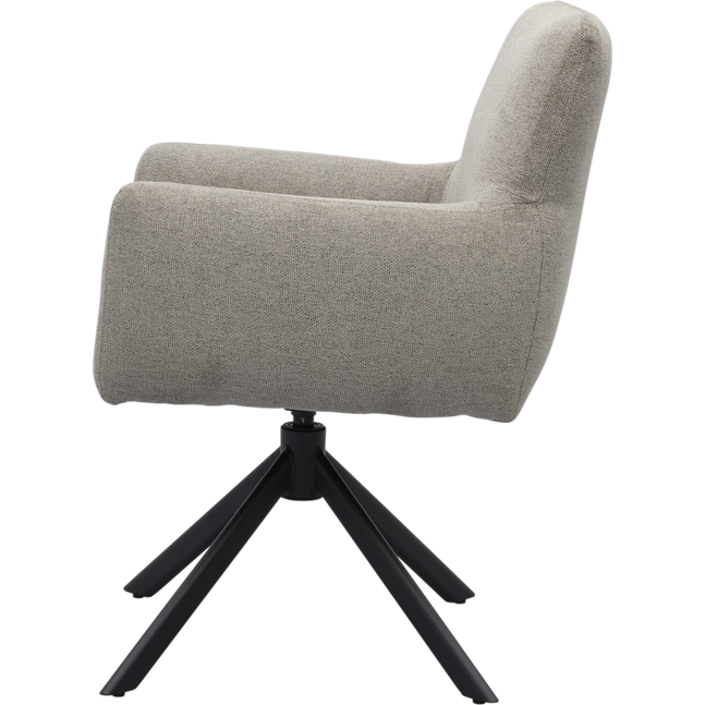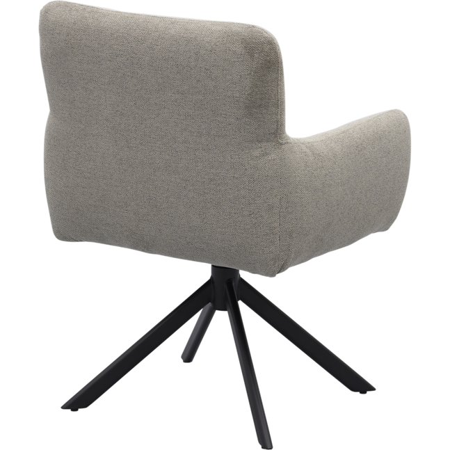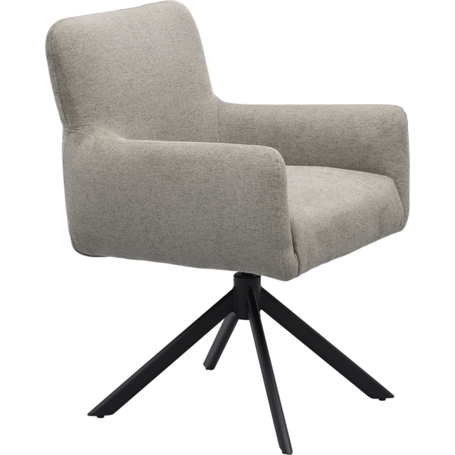 Armstoel Faya uit de collectie van Trendhopper is een eigentijdse toevoeging aan de eetruimte. De combinatie van de tijdloze grijze bekleding met het zwarte, metalen kruisonderstel geeft de stoel een moderne en stijlvolle uitstraling. Dankzij het verfijnde ontwerp biedt Faya niet alleen een comfortabele zitervaring, maar brengt de stoel ook balans in het interieur.