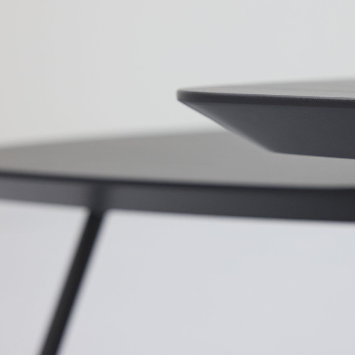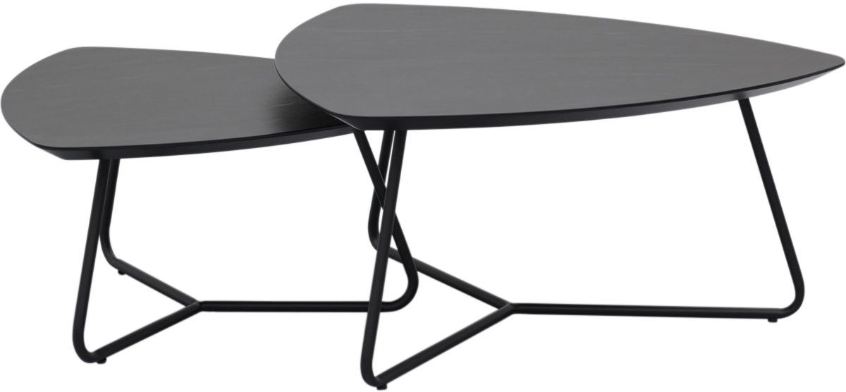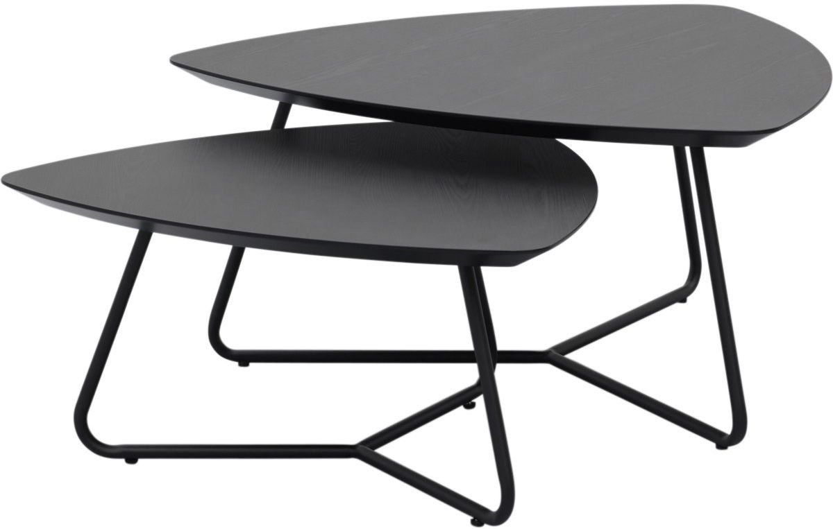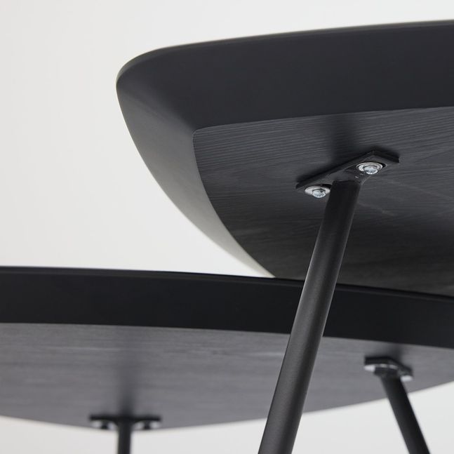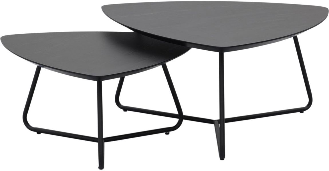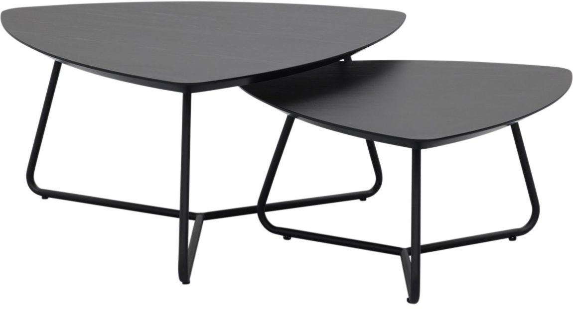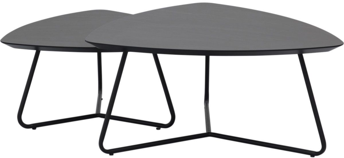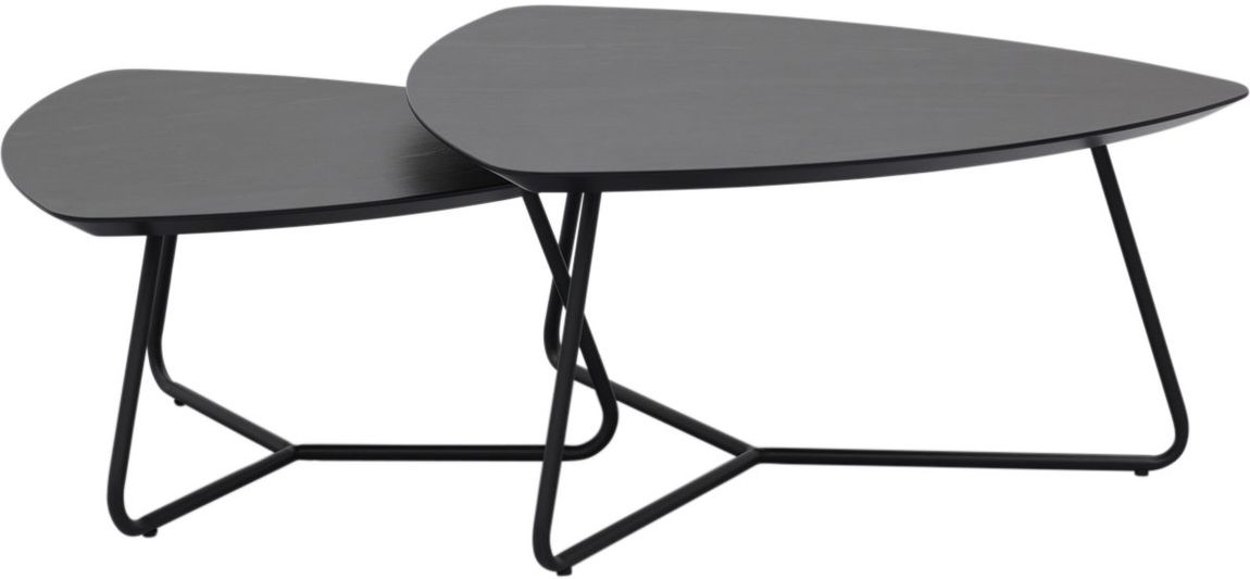 Salontafelset Lynn van Trendhopper past moeiteloos in uiteenlopende woonstijlen, van modern tot industrieel. De set bestaat uit twee tafels met een speels asymmetrisch design, waarmee je de woonruimte op een subtiele manier een eigentijdse uitstraling geeft. De tafelbladen zijn uitgevoerd in zwart HPL, een krasbestendig materiaal dat het moderne karakter van de set versterkt.