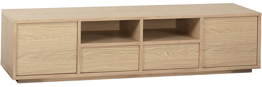 Breng rust en functionaliteit in je interieur met het Tv-meubel Tokio van Trendhopper. Dit eigentijdse meubel is uitgevoerd in de kleur Blond Oak en vervaardigd uit het onderhoudsvriendelijke Lamulux. Met twee deuren, twee lades en twee open vakken biedt Tokio voldoende ruimte voor media-apparatuur en accessoires. Het strakke, greeploze design zorgt voor een opgeruimd geheel in elke woonruimte.