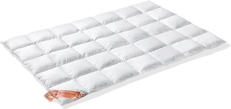 Dit donsdekbed van Vandyck heeft tussenschotjes en is afgewerkt met een bies. De tijk is geweven van de fijnste makokatoen, met een extra soft finishing. Voor 95% bestaat de vulling uit zuivere witte Oost-Europese ganzendons en voor 5% uit kleine ganzenveertjes. Het dekbed Excellent 650 Solo valt in comfortklasse 5, bevat een zeer goede isolatiewaarde en heeft de best denkbare drapeerbaarheid.