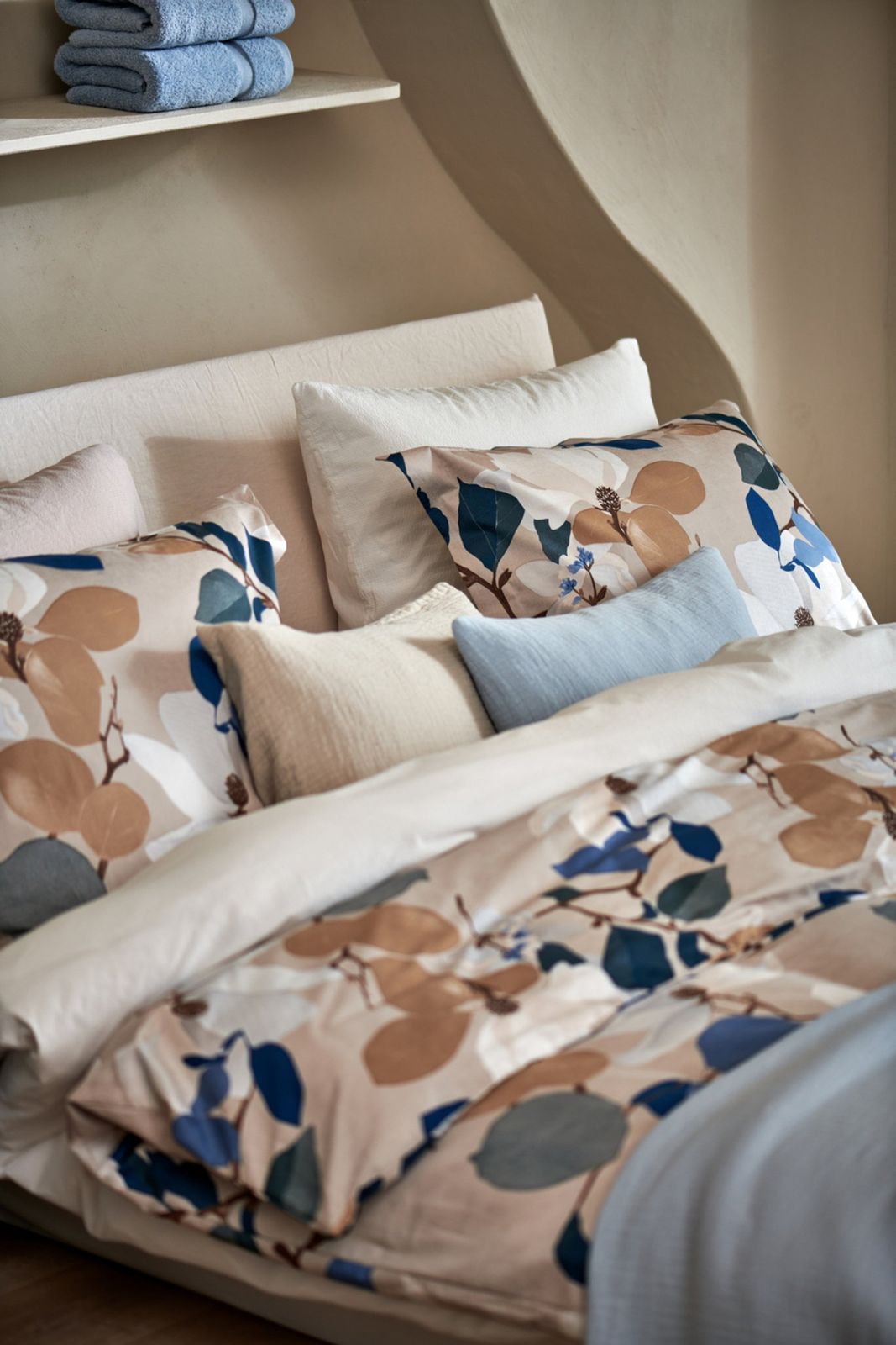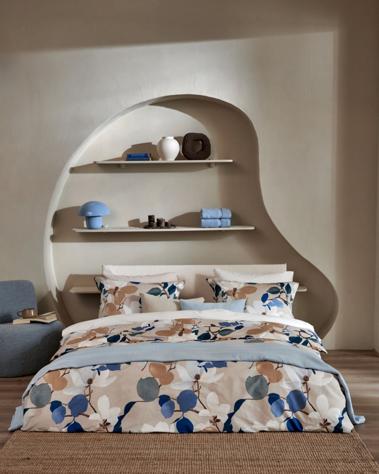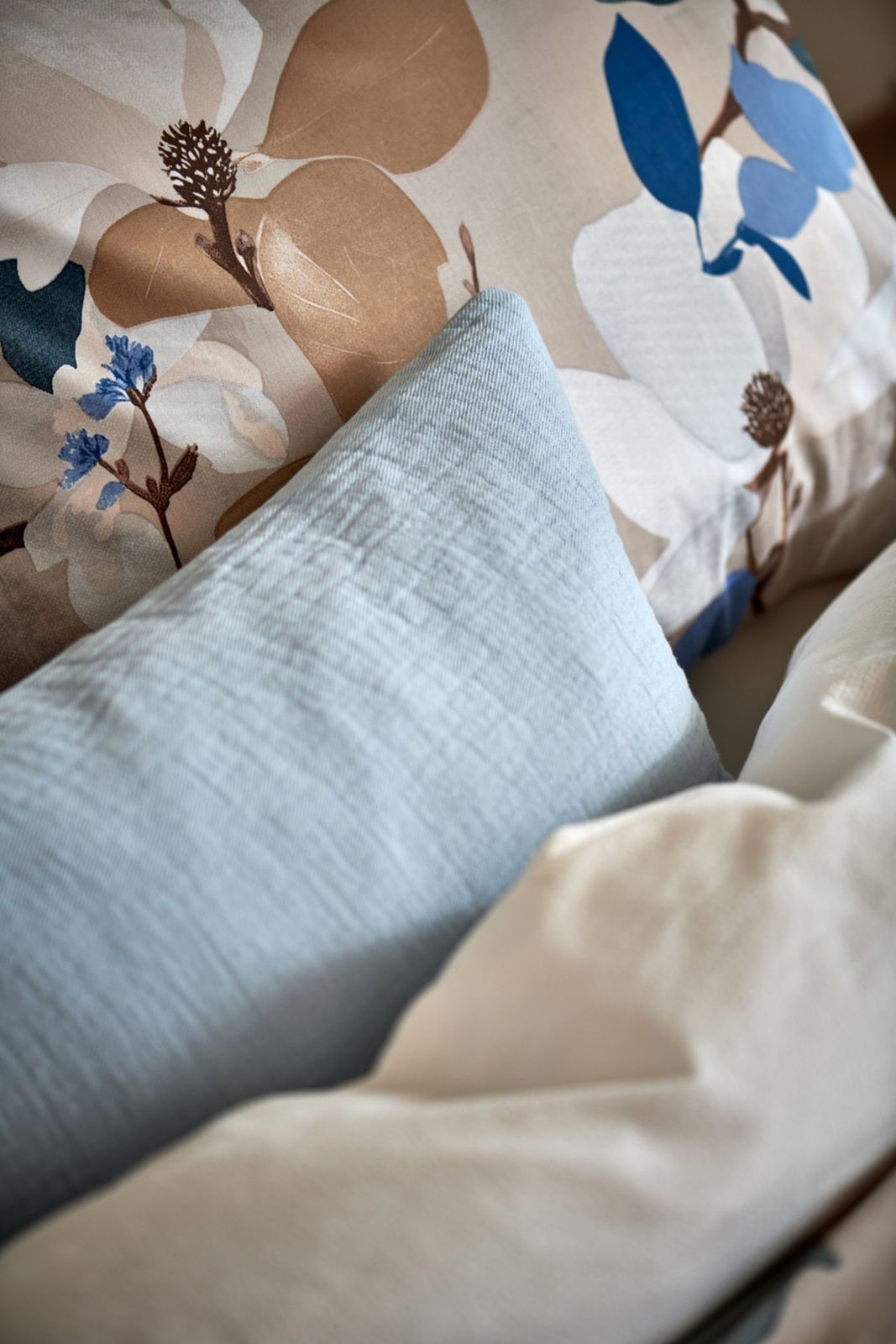 Geef de slaapkamer een stijlvolle en natuurlijke uitstraling met het Loma dekbedovertrek van VanDyck. Het dessin met elegante takken, bladeren en bloemen in tinten van blauw, zand en wit zorgt voor een rustig, uitgebalanceerd geheel. Het katoensatijn voelt aangenaam zacht en soepel aan en heeft een verfijnde glans, wat bijdraagt aan een comfortabel slaapgevoel. Ontdek de gehele collectie dekbedovertrekken van VanDyck in onze woonwinkels!
