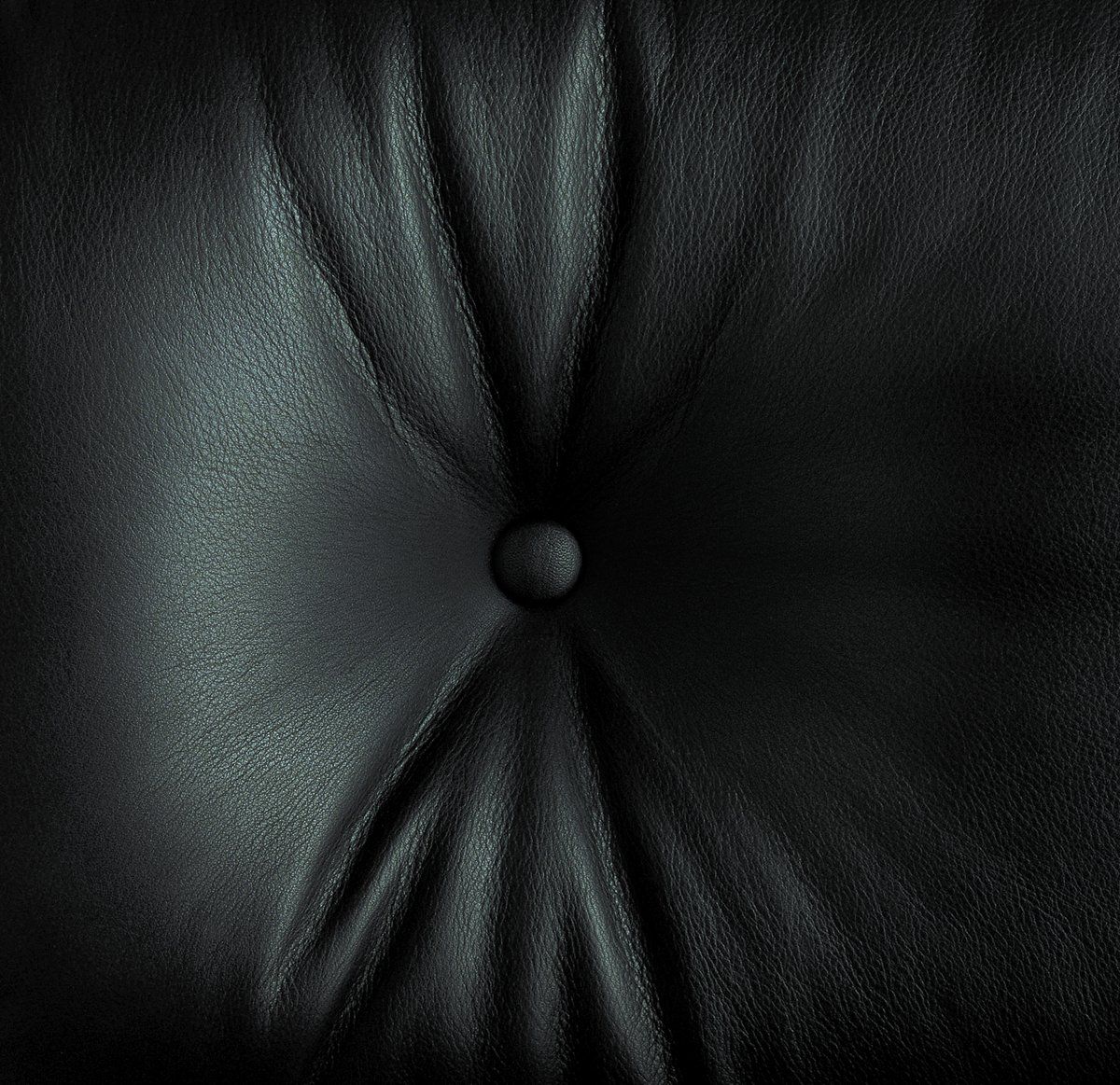 Deze uitvoering van de Lounge Chair wordt geleverd met een bijpassende poef en in Santos Palisander met een bekleding in zwart leer (Premium 66 Nero) en een gepolijst onderstel met de zijkant in zwart. Daarnaast is de fauteuil voorzien van viltglijders voor harde vloeren.
