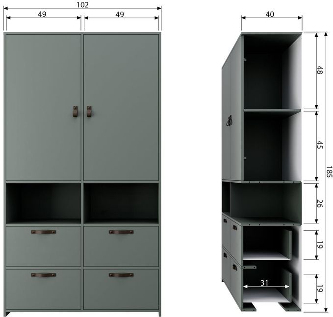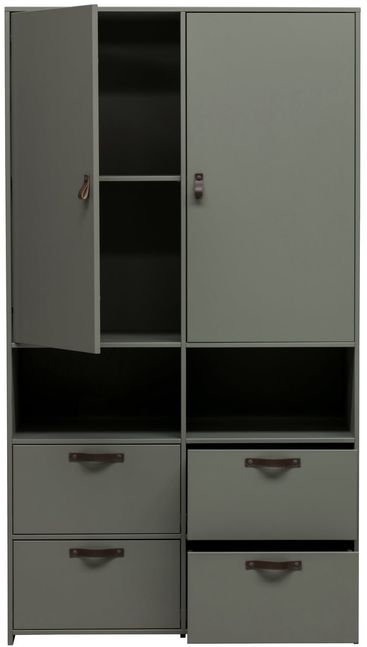Opbergkast Stage van vtwonen is de perfecte kast om allerlei spullen stijlvol in op te bergen. De Stage kast is voorzien van twee deuren, vier lades en twee niches. De opbergkast is vervaardigd uit donkergroen hout en brengt hiermee een sfeervolle uitstraling naar de woonruimte. Combineer deze kledingkast met verschillende woonaccessoires voor een harmonieus geheel.