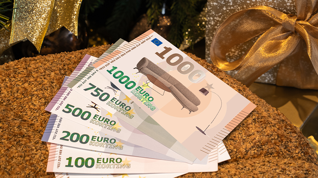 In onze extra sfeervolle winkels ligt een feestelijke envelop voor je klaar met wooncheques tot 1000.- voordeel op wonen, slapen & design!