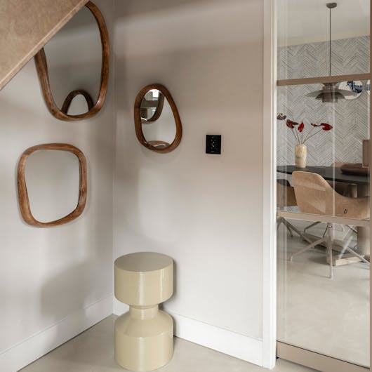 De hal staat vaak los van de rest van het huis, terwijl het juist een ideale plek is om jouw interieurstijl door te trekken. Kies kleuren, materialen en accessoires die aansluiten bij de woonkamer of keuken, zodat de overgang tussen ruimtes natuurlijk aanvoelt. Denk aan eenzelfde kleuraccent, een vergelijkbare houtsoort of een terugkerend detail zoals zwart metaal of messing. Zo ontstaat er een harmonieus geheel waarin de hal niet op zichzelf staat, maar een volwaardig onderdeel wordt van jouw interieurbeleving.