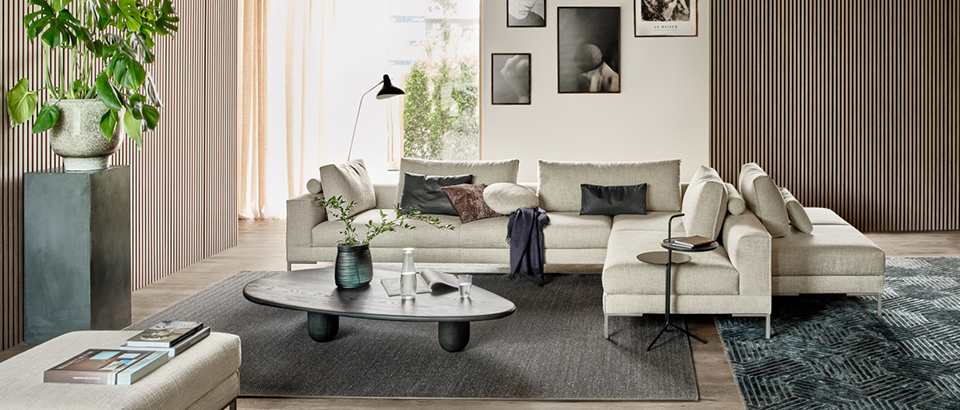 Een grote woonkamer vraagt om grote gebaren. Met grote meubels vul je de ruimte en voorkom je dat de woonruimte kil en leeg aanvoelt. Door verschillende woonfuncties te clusteren ontstaan sfeervolle, kleinere leefeilanden in de ruimte. Met een elementenbank creëer je bijvoorbeeld een groot ziteiland en tegelijkertijd ook veel flexibiliteit. Durf met een elementenbank out of the box te denken: de armleuning van het ene element kan prima dienen als rugleuning van een ander element. Op deze manier is het mogelijk aan alle kanten te zitten: richting de televisie, met zicht naar de tuin of in contact met de eethoek.