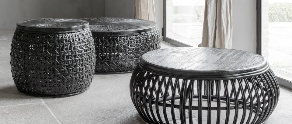 Rotan is afkomstig van de rotanpalm en staat bekend om zijn stevigheid en flexibiliteit. Het is een duurzaam natuurproduct dat met de hand wordt gevlochten – hierdoor is elke rotan salontafel uniek. De open structuur van het vlechtwerk maakt de tafels optisch licht en ruimtelijk, wat ze ook zeer geschikt maakt voor kleinere woonkamers of appartementen. Dankzij het robuuste karakter van het materiaal zijn rotan tafels bestand tegen dagelijks gebruik, terwijl ze hun natuurlijke uitstraling behouden.