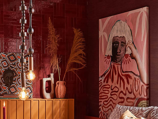 De felle kleuren in woonstijl Atelier Nomad geven kracht voor een veelbelovende toekomst. Na een tijd van stilstand bewegen we vooruit en laten we ons opnieuw verwonderen door culturen van ver buiten onze eigen landsgrenzen. De Terracotta Warrior muurverf van LAB paint combineert perfect met het donkerrode behang van Eijffinger en betonlook PVC vloer welke de basis vormen voor een wereldse materiaalmix van leer, hout, bamboe, keramiek en wol.