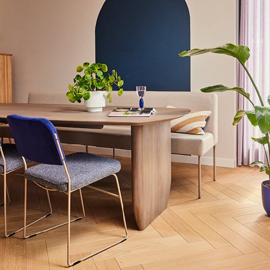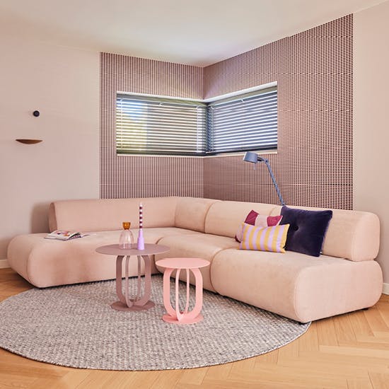 Bij een kleurrijk industrieel interieur draait het om contrast én harmonie. Denk aan zwart staal dat zichtbaar blijft, gecombineerd met een muurverf in greige of zacht taupe. Of kies blauw of roze als accentkleur op een wand en combineer met een stoffen fauteuil en metalen eetkamerstoelen. Het rauwe karakter van industrieel blijft voelbaar, maar wordt verzacht door natuurlijke materialen, kleurrijke details, warme houttinten en texturen zoals bouclé of linnen. Zo ontstaat een stijlvol geheel waarin het stoere industriële element wordt omarmd door gezelligheid.