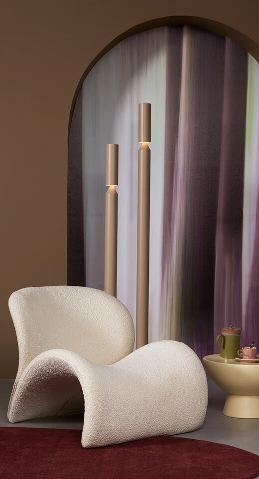 Royale vormen en slanke meubels vloeien moeiteloos samen in de woontrends van 2025. De volumineuze bank is de ultieme cocon in dit funky interieur, perfect gecombineerd met een salontafel in een sierlijke, organische vorm. Heb je het onderstel al gezien? Geïnspireerd op gedraaide takken, helemaal in lijn met de trend waarin we de natuur omarmen. Een ander pronkstuk is de Arc fauteuil uit de Eijerkamp Collectie, met een elegant design dat doet denken aan ontluikende bladeren – natuur en comfort in perfecte harmonie!