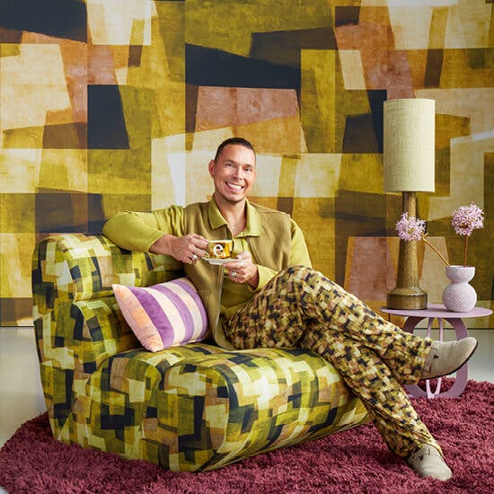“Een interieur geïnspireerd op de natuur saai? Nee hoor, verre van! Met krachtige patronen geef je deze woontrend van 2025 in no time een flinke dosis fun. Kijk maar naar deze kleurrijke loungefauteuil. Als je door je wimpers kijkt, herken je de talloze kleurschakeringen van een groots groen bos. Wat een blikvanger!”