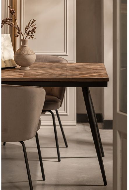 Op eetkamerstoel Admit van BePureHome kun je uren lang heerlijk tafelen! De stoel is bekleed met een zachte velvet stof en staat op poten die zijn afgewerkt met een matzwarte poedercoating. Getoond model is de kleur khaki en is tevens verkrijgbaar in staalblauw. Mix en match de stoelen voor een speelse look.