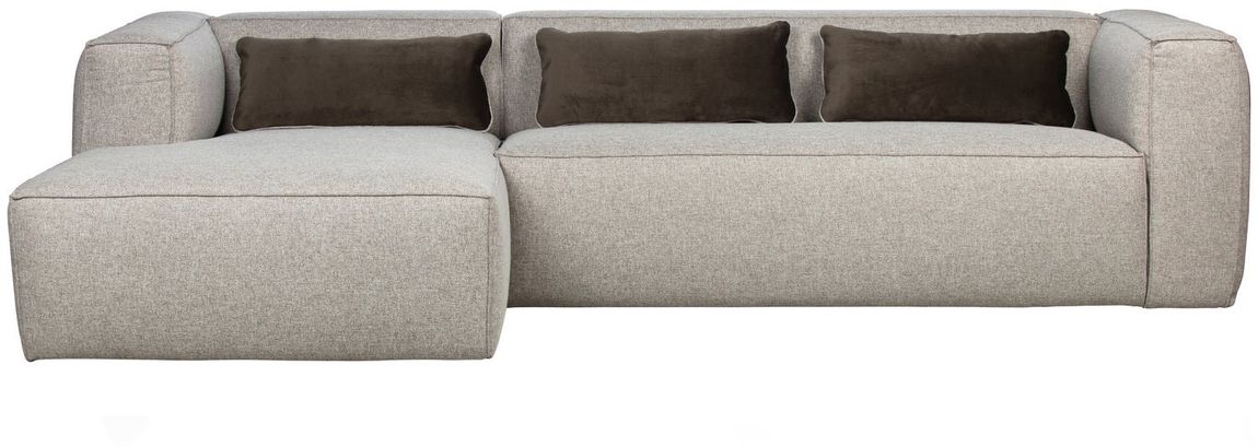 De Bean hoekbank is een robuuste verschijning met comfortabele zit. De bank is volledig gestoffeerd met duurzame stof in de kleur licht grijs. Dankzij haar stevige body is urenlang comfortabel relaxen in stijl gegarandeerd! De bank is voorzien van drie sierkussens in dezelfde kleur. De WOOOD hoekbank heeft voldoende ruimte voor ten minste drie ruime zitplekken en is voorzien van een loungechair aan de linkerzijde. De Bean hoekbank is tevens verkrijgbaar in meerdere varianten.