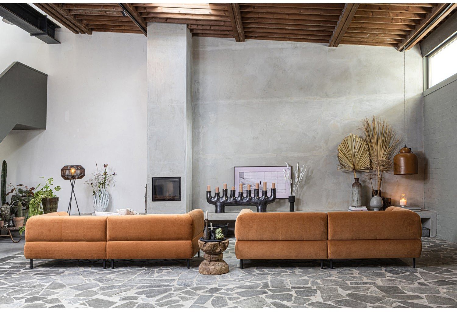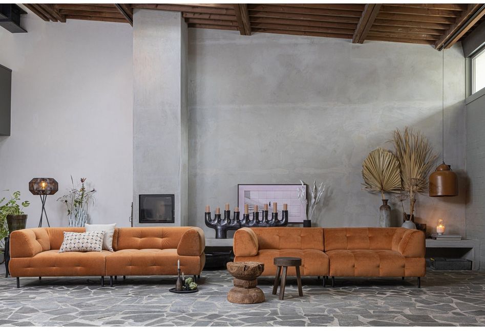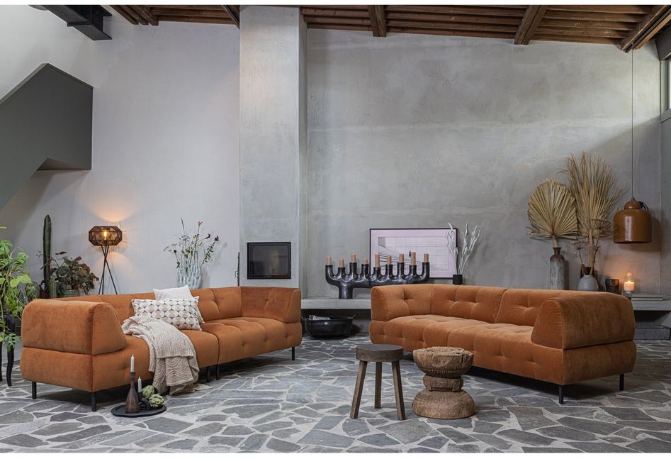 Getoond model is bekleed met een matglanzende velvet stof in de kleur Cinnamon. De zachte bank kan goed gecombineerd worden met de andere meubelen uit de serie. De Lloyd serie bestaat naast de royale 4-zitter, ook uit een fauteuil en een hocker. De meubelen zijn ook te verkrijgen in diverse kleuren.