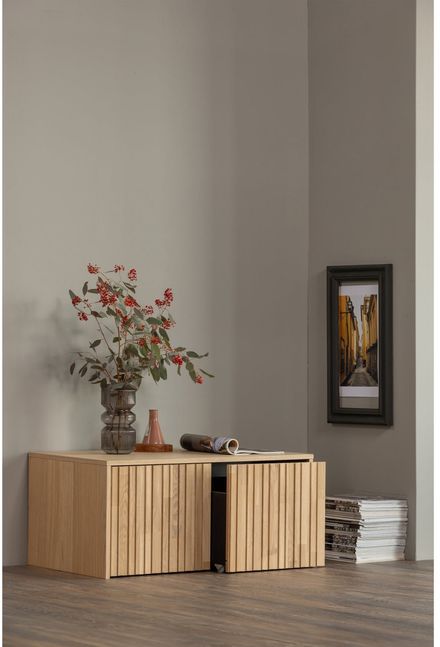 De WOOOD New Gravure opbergbank is een stijlvolle combinatie van zitcomfort en slimme opbergruimte. Het strakke design met eikenfineer geeft een warme, moderne uitstraling en past moeiteloos in elk interieur. Ideaal voor de hal, woonkamer of slaapkamer. Omdat fineer een natuurproduct is, kunnen lichte kleur- en nerfverschillen voorkomen, waardoor elk meubelstuk uniek is.