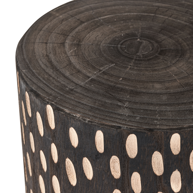 De Perry Kruk van WOOOD is gemaakt van paulowniahout, een houtsoort met grove en robuuste kenmerken. Knoesten en barsten dragen bij aan de natuurlijke uitstraling van het ontwerp. Dankzij de warme houttint en het eenvoudige design is de kruk veelzijdig in gebruik, zowel als bijzettafel of decoratief element.