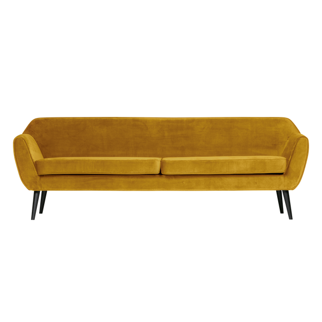 Plof met het hele gezin neer op de royale 4-zitsbank Rocco uit de collectie van WOOOD. Deze prachtige bank is echte eyecatcher in de woonkamer en heeft een comfortabele zit waarvan de zit- en de rugkussens vast gestoffeerd zijn. De retro invloeden zoals de ronde vormen en schuine hoge poten passen perfect bij de bekleding. De bank is namelijk bekleed met een 100% polyester fluwelen stof, wat gemakkelijk in onderhoud en kleurecht is, een goede slijtweerstand heeft en heerlijk zacht aanvoelt! Dit vormt een subtiel contrast met de elegante, zwartgelakte pootjes. Liever een andere uitvoering? Dat kan! Rocco is in diverse materialen, kleuren en afmetingen verkrijgbaar.