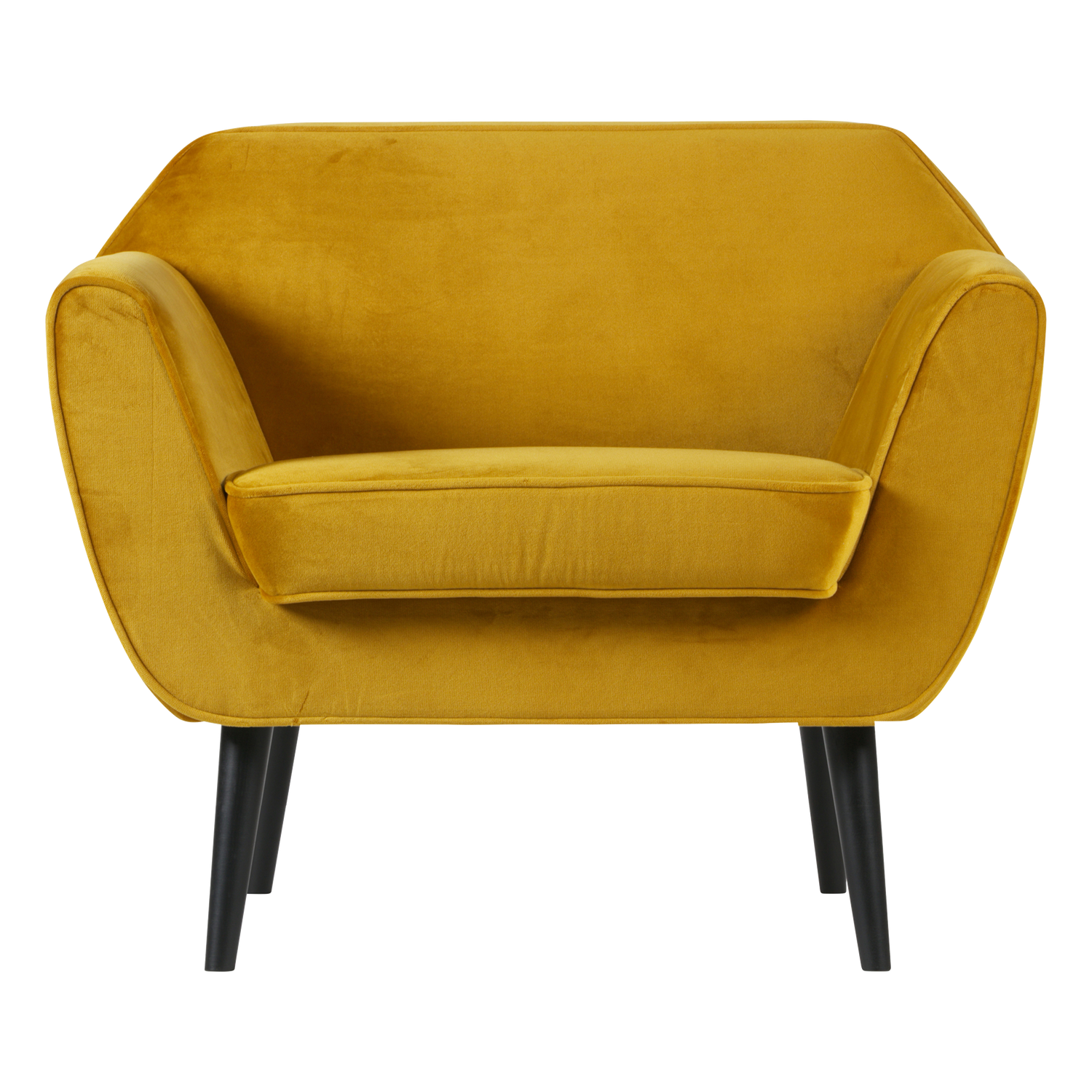 Kom heerlijk tot rust in de Rocco fauteuil uit de collectie van WOOOD. Deze stijlvolle stoel heeft een comfortabele zit dankzij de ondersteunende armleuningen en het royale zitvlak. De retro invloeden zoals de ronde vormen en schuine hoge poten passen perfect bij de bekleding. De bank is namelijk bekleed met een 100% polyester fluwelen stof, wat gemakkelijk in onderhoud en kleurecht is, een goede slijtweerstand heeft en heerlijk zacht aanvoelt! Dit vormt een subtiel contrast met de elegante, zwartgelakte pootjes. Liever een andere uitvoering? Dat kan! Rocco is in diverse materialen en kleuren verkrijgbaar.