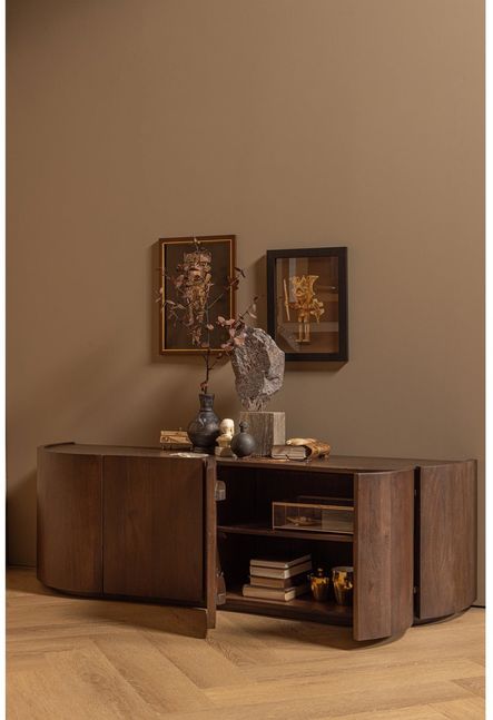 Het Sense dressoir van WOOOD is een opbergkast gemaakt van mangohout en biedt ruime opbergmogelijkheden achter vier deuren. Het dressoir heeft een warme houtstructuur en afgeronde vormen die zorgen voor een vriendelijke uitstraling in de woonkamer, hal of eetruimte. De binnenzijde is voorzien van brede legplanken, waardoor servies, boeken of woonaccessoires overzichtelijk kunnen worden opgeborgen. Het stevige mangohout maakt het meubel geschikt voor dagelijks gebruik in huis.