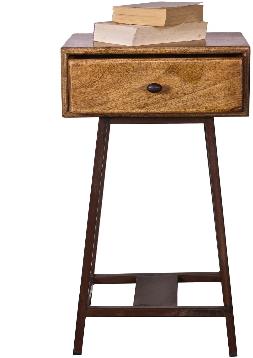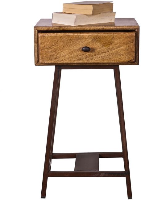 Met de bijzettafel Skybox van WOOOD creëert u een sfeervolle retro look! Dit item is gemaakt van hout en heeft een stoer metalen onderstel, wat zorgt voor een industriële uitstraling met een vintage knipoog. De bijzettafel is tevens beschikbaar in het zwart.