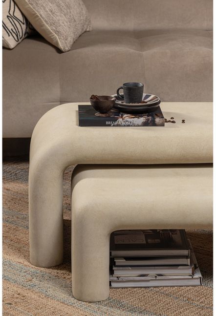 Salontafelset Stani van WOOOD brengt een subtiele Scandinavische lichtheid in iedere woonruimte. De set bestaat uit twee tafeltjes die je speels kunt combineren: schuif ze deels over elkaar voor een compact geheel of plaats ze los van elkaar voor een ruimtelijk effect. De natuurlijke tint en afgeronde hoeken laat het Noorse eenvoud tot leven komen, maar werkt ook naadloos als warm contrast in een donkerder interieur.