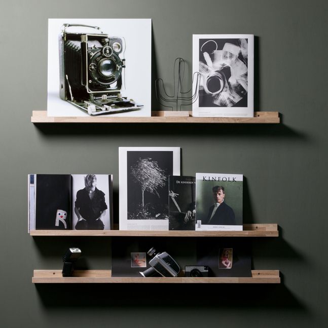 Creëer een opvallende muurdecoratie met de Studio fotolijstplank van Woood. Op de wandplank kunnen zowel fotos als andere pronkstukken worden geplaatst. Een fijne basic toevoeging aan uw interieur en leverbaar in twee kleuren.