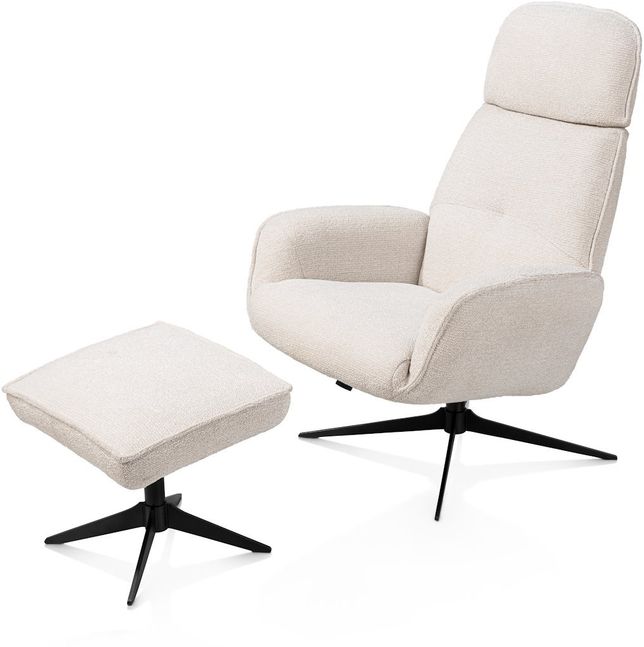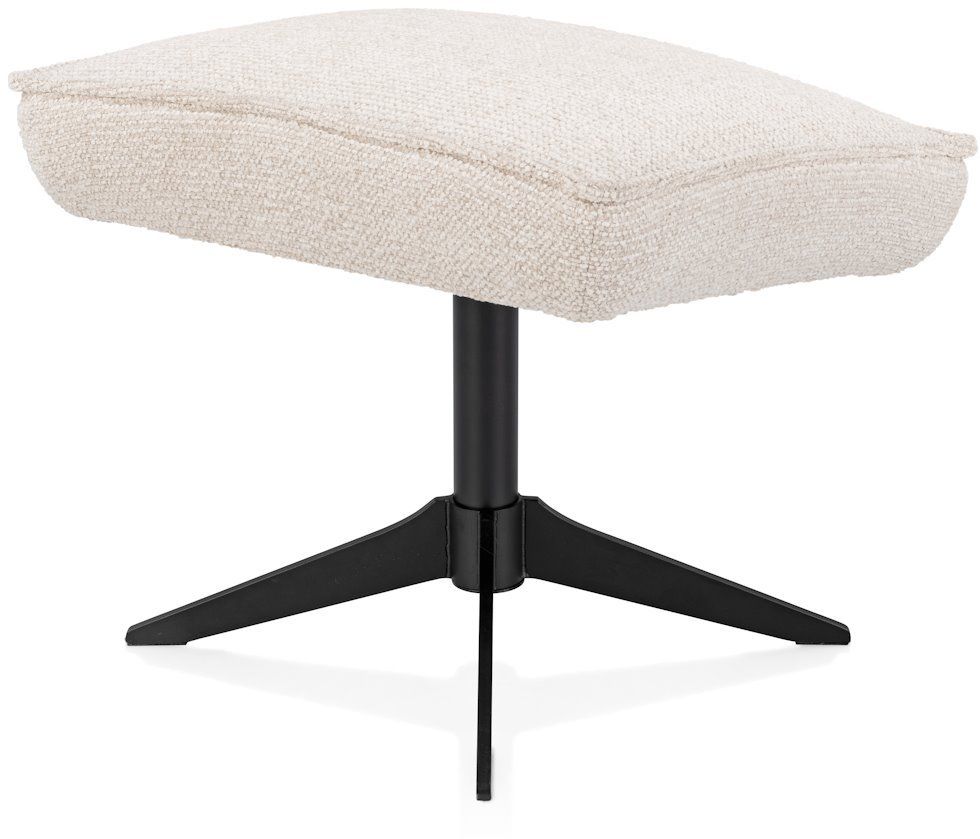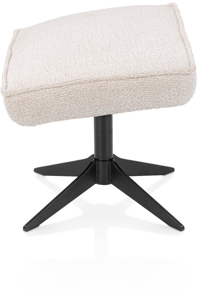 Hocker Bobbian van XOOON vormt een stijlvolle aanvulling op de bijpassende relaxfauteuil. Bobbian is bekleed met de stof Sevilla in een tijdloze crèmekleur en staat op een zwart onderstel, waardoor een rustig en samenhangend geheel ontstaat. Met zijn ronde vormgeving sluit de hocker naadloos aan op het design en draagt hij bij aan een ontspannen zithouding. Gebruik de hocker als comfortabele voetensteun bijhorend bij de fauteuil of als extra zitplaats binnen de ruimte.
