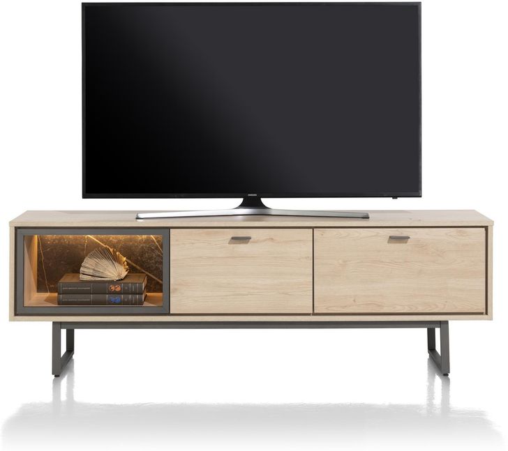 Transformeer je woonruimte met eigentijdse lowboard Helsinki uit de collectie van XOOON: een unieke samensmelting van stijl en moderniteit. Helsinki is vervaardigd uit hout en wordt gedragen door een rank metalen onderstel voor een tijdloze uitstraling. Deze kast biedt naast voldoende opbergruimte, ook een verlichte presentatiemogelijkheid om jouw favoriete woonaccessoires te kunnen vertonen.