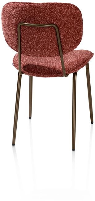 Eetkamerstoel Lexi van XOOON biedt een combinatie van eigentijds design en uitzonderlijk zitcomfort. De stoel is bekleed met de bijzondere Cloudy stof, die dankzij de warme koperkleur direct sfeer toevoegt aan de eethoek. Het donkerbruine stalen frame geeft de Lexi een stoere, industriële touch, terwijl de zachte rondingen juist weer subtiel verwijzen naar retro design. Zo vormt de Lexi een stijlvol en harmonieus geheel dat moeiteloos past in een modern, industrieel of vintage interieur.