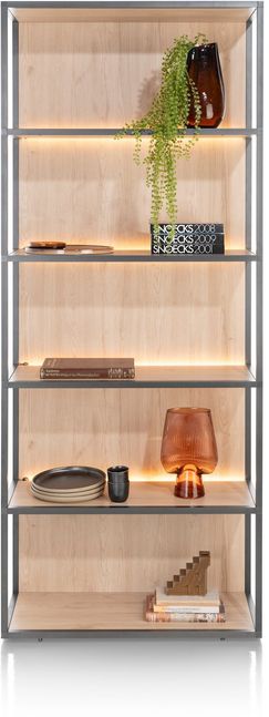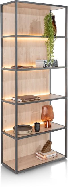 Verrijk je woonruimte met eigentijdse boekenkast Lindfield uit de collectie van XOOON. Deze boekenkast kenmerkt zich door de combinatie van een elegant zwart metalen frame en een naturel eikenhouten achtergrond, wat een tijdloze en verfijnde uitstraling creëert. Elk niveau van de kast biedt bovendien de optie om verlicht te worden, waardoor jouw favoriete woonaccessoires op een ideale manier worden uitgelicht.