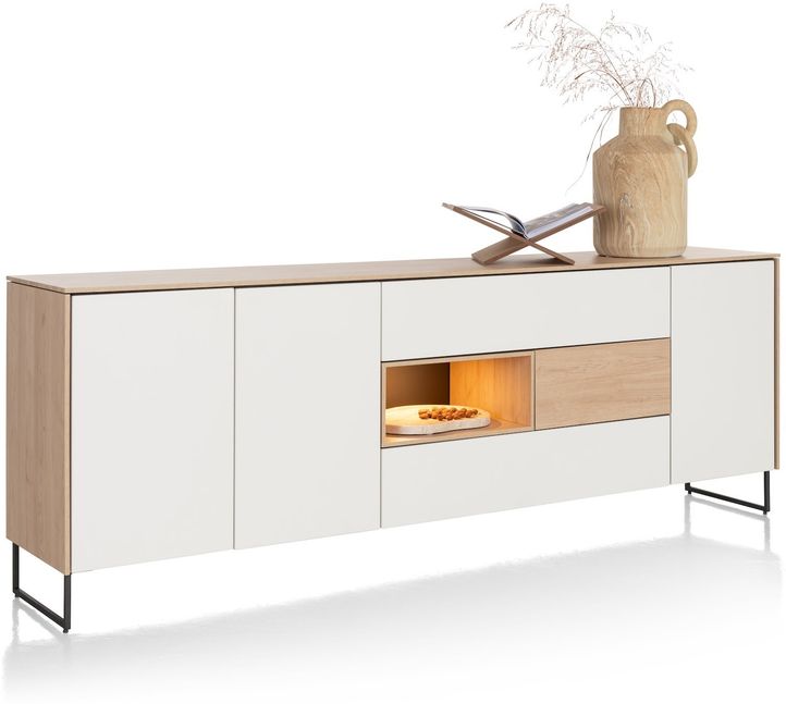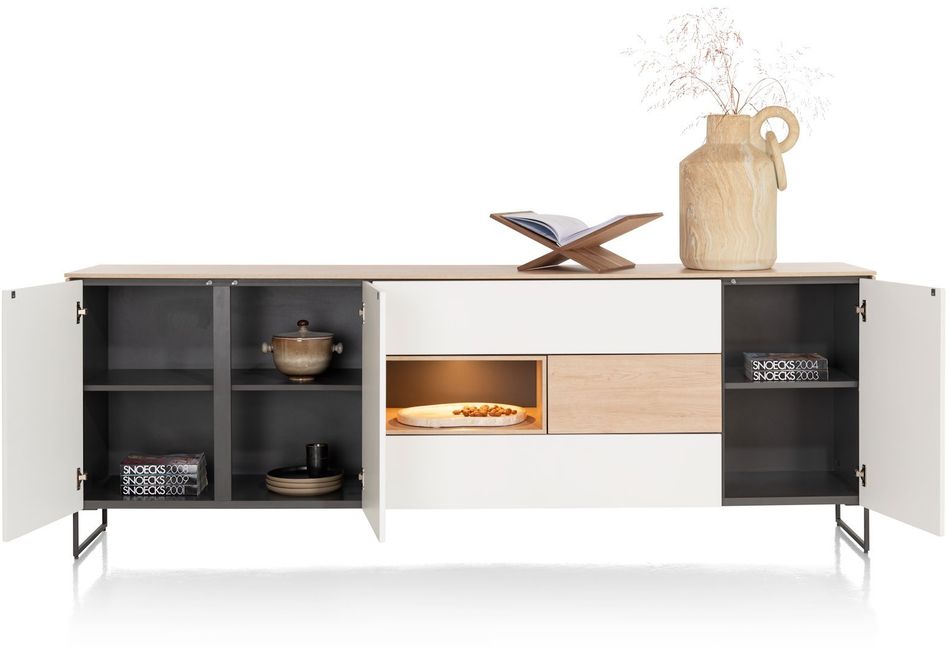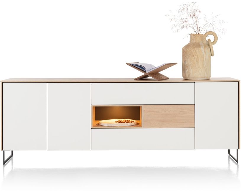 Geef je woonruimte een unieke uitstraling met moderne dressoir Lindfield uit de collectie van XOOON. Lindfield onderscheidt zich door zijn witte deuren, die een gevoel van ruimtelijkheid creëren in je leefomgeving. Het slanke metalen onderstel creëert een zwevend effect, waardoor het dressoir een luchtige uitstraling krijgt. Naast voldoende opbergmogelijkheden beschikt Lindfield ook over een open nis waarin je jouw favoriete woonaccessoires kunt presenteren.