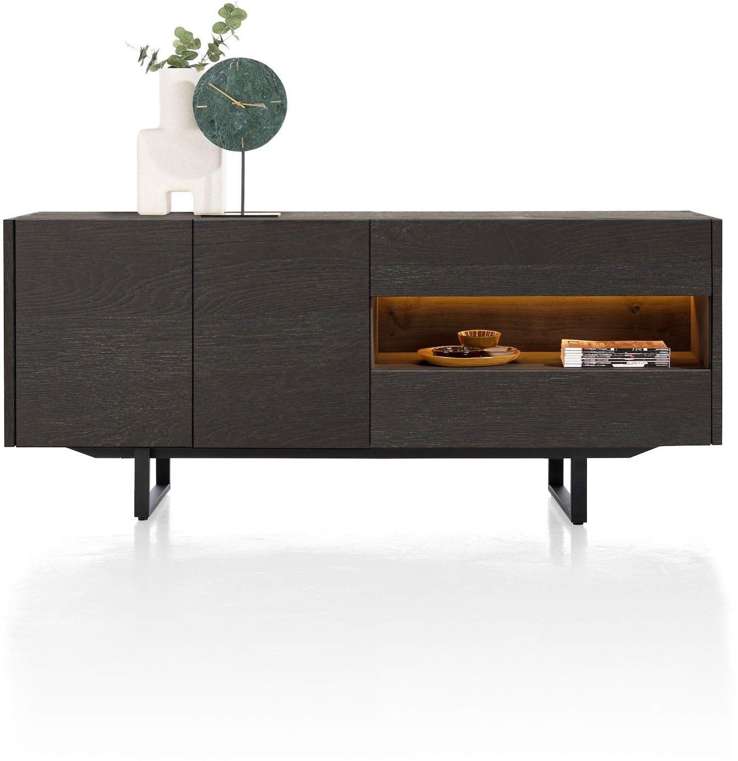 Het dressoir is 190 cm breed en is voorzien van twee deuren en lades, waarachter je veel opbergruimte hebt. Daarnaast is er een nisje, waarin je persoonlijke items kunt uitlichten, dankzij geïntegreerde ledverlichting. Modali wandkast is naast getoonde uitvoering in zwart eikenfineer ook verkrijgbaar in diverse afmetingen en andere fineerafwerkingen.