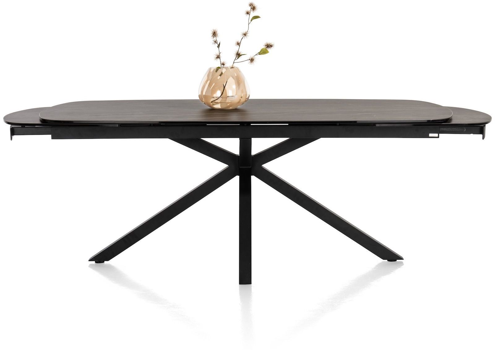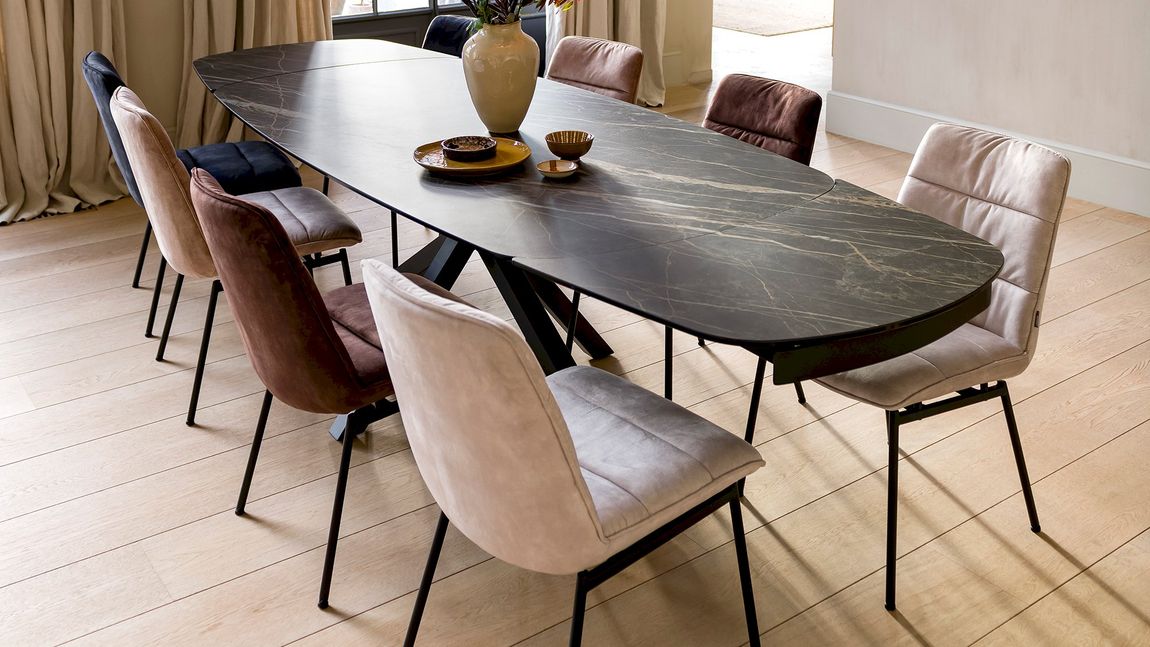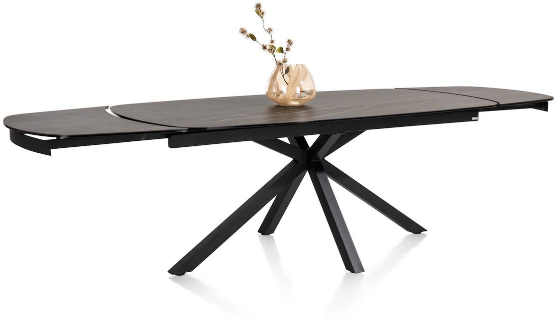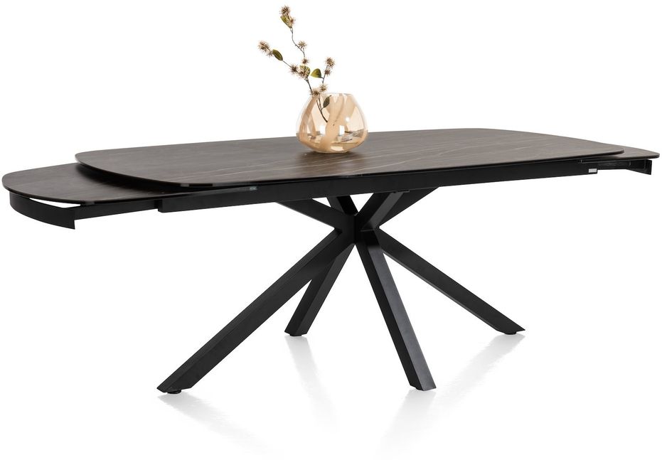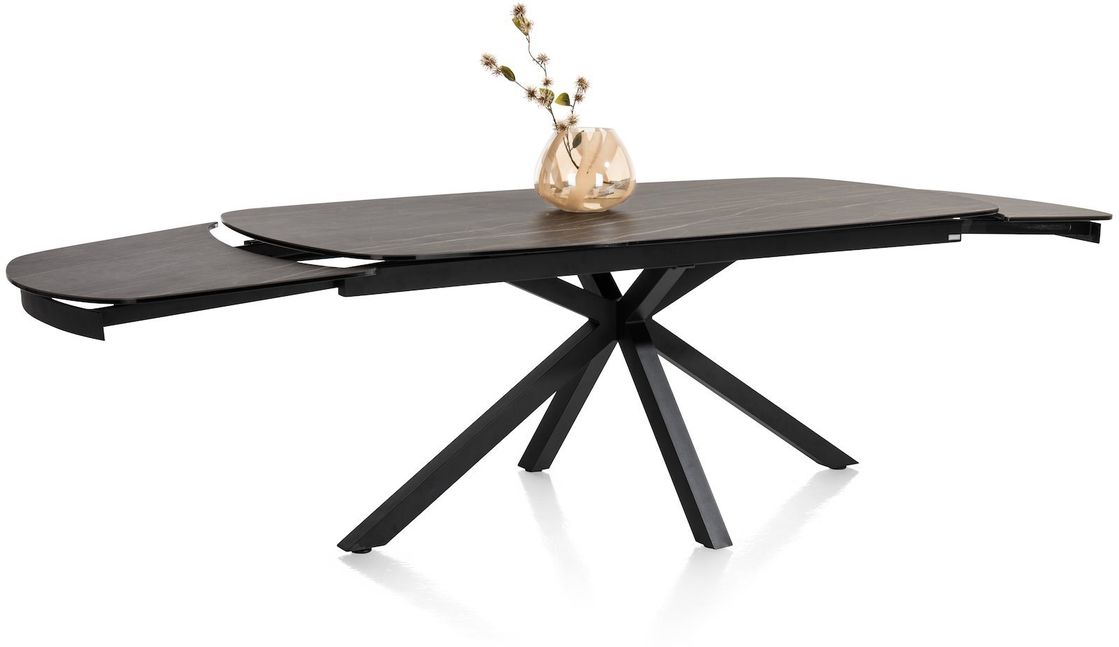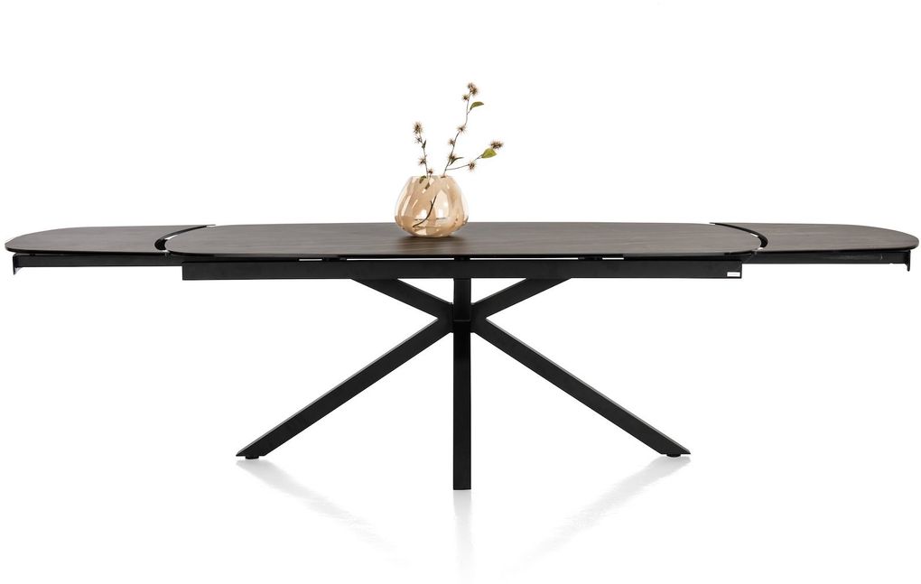 Uitschuiftafel Montello van XOOON is een moderne eettafel met een chique uitstraling. De eettafel is voorzien van een zwart keramieken tafelblad met een bruine ader. Extra fijn: het blad is uitschuifbaar. Zo creëer je aan beide zijden in een handomdraai maar liefst 50 centimeter extra ruimte. Handig, zo neemt de eettafel relatief weinig ruimte in maar heb je wel voldoende zitplekken wanneer je met een groot gezelschap wil tafelen.