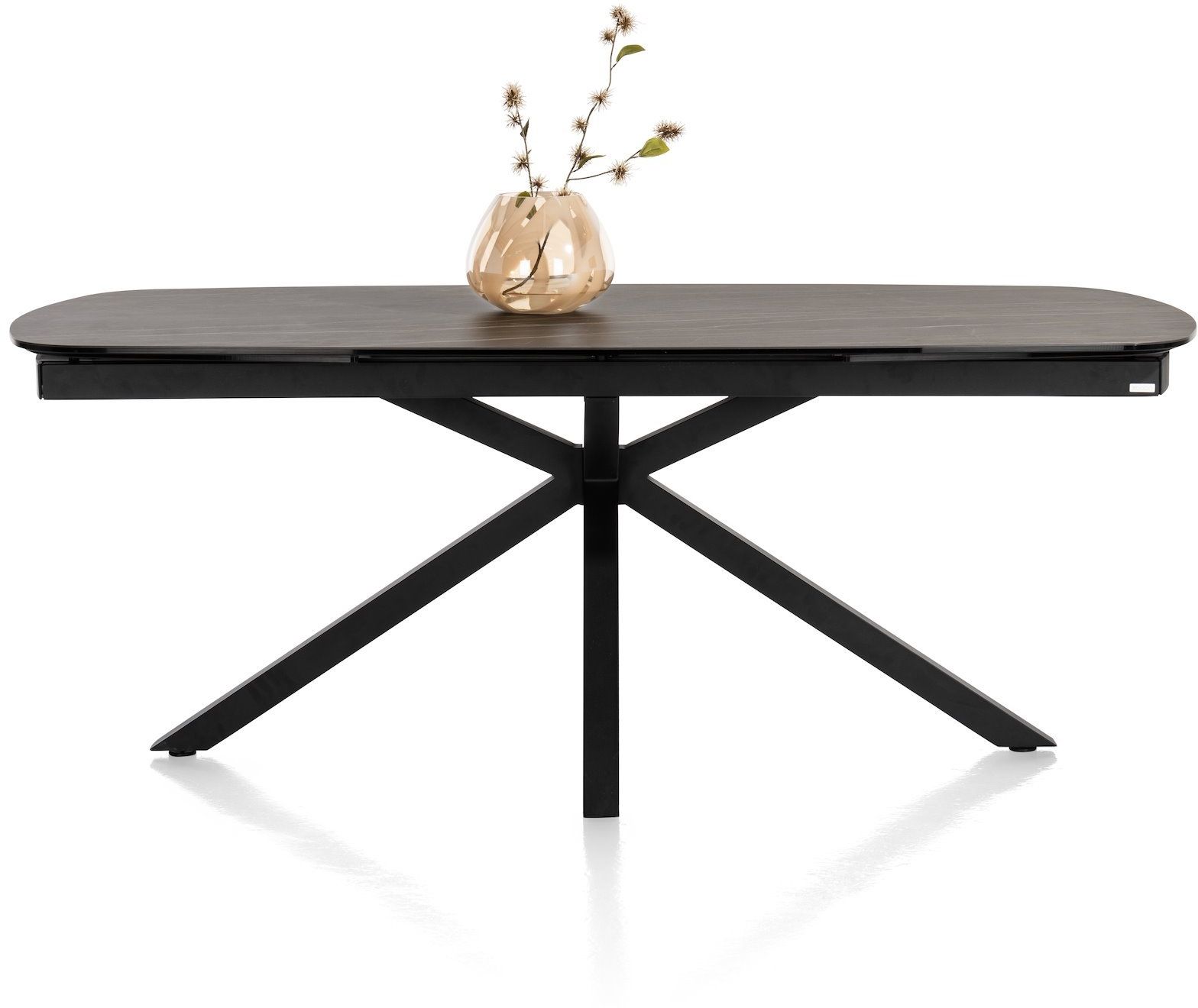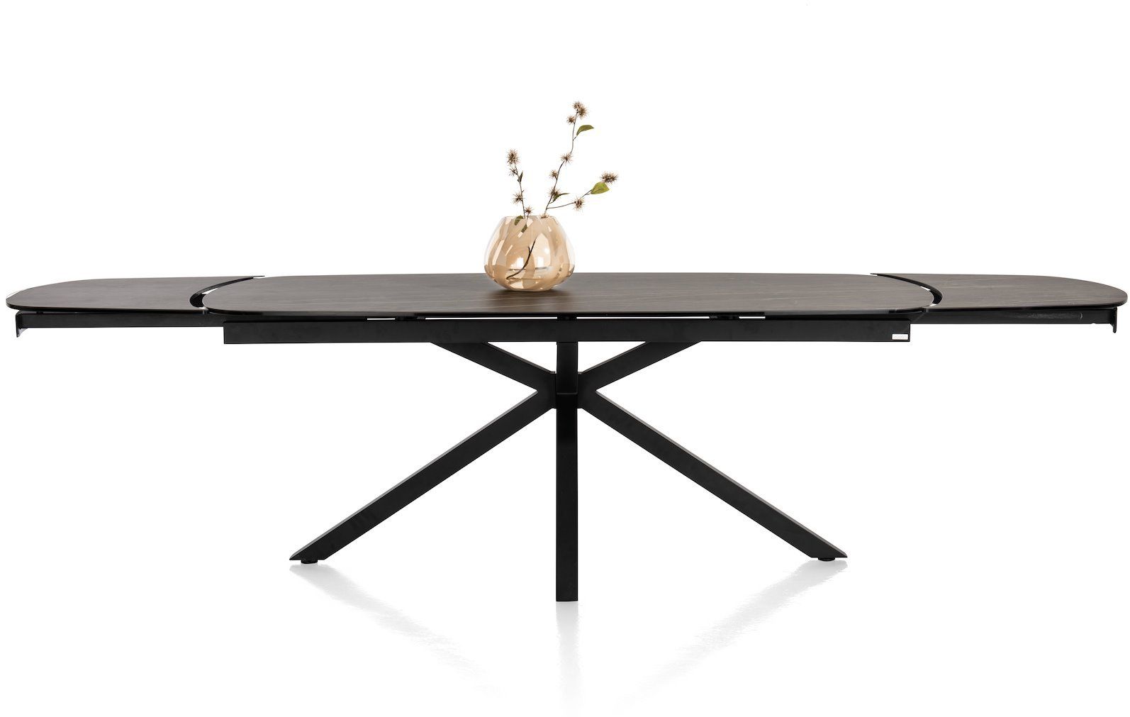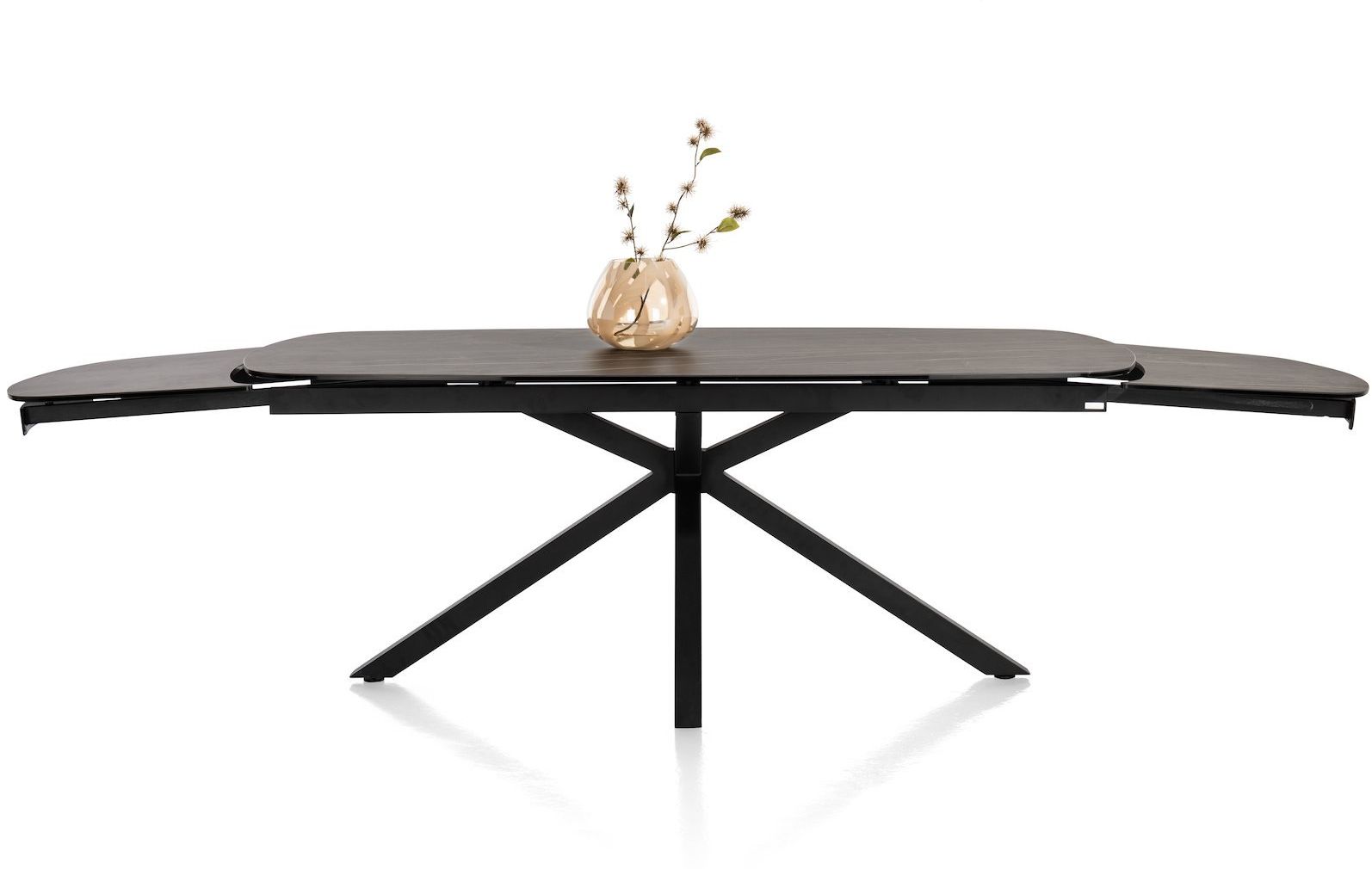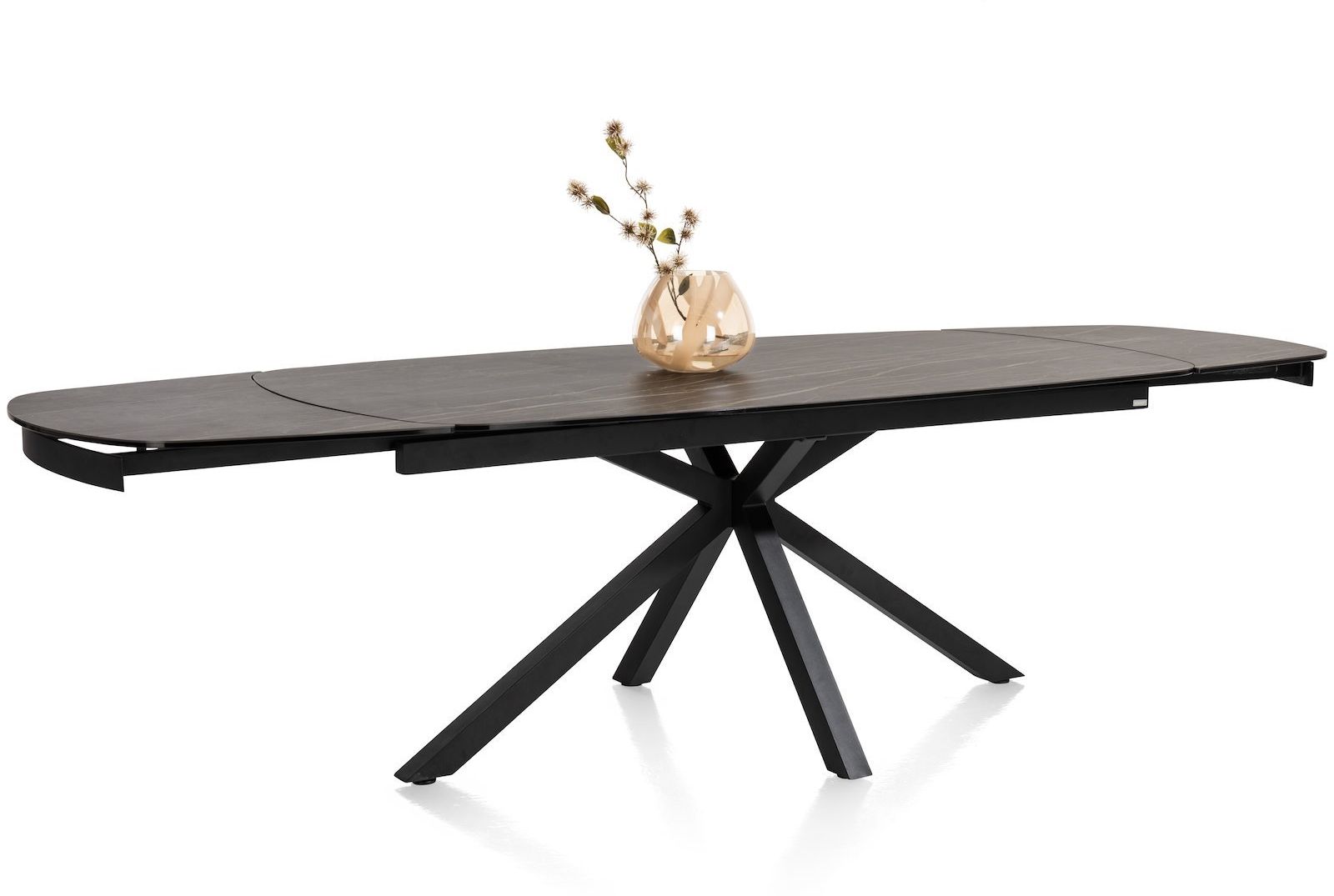 Uitschuiftafel Montello van XOOON is een moderne eettafel met een chique uitstraling. De eettafel is voorzien van een zwart keramieken tafelblad met een bruine ader. Extra fijn: het blad is uitschuifbaar. Zo creëer je aan beide zijden in een handomdraai maar liefst 50 centimeter extra ruimte. Handig, zo neemt de eettafel relatief weinig ruimte in maar heb je wel voldoende zitplekken wanneer je met een groot gezelschap wil tafelen.