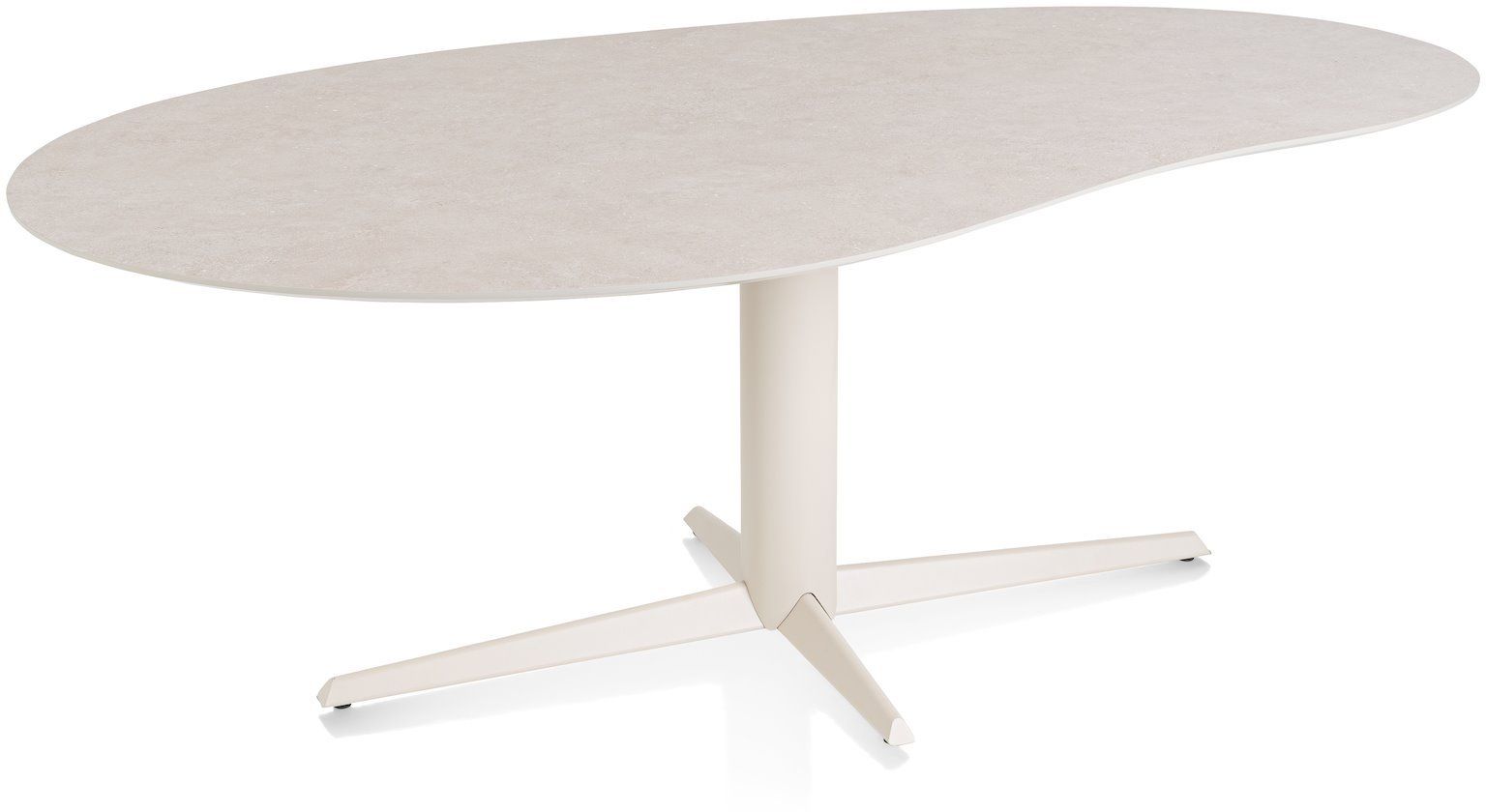 Eettafel Saluti van XOOON is de moderne en veelzijdige tafel die in vrijwel ieder interieur tot zijn recht komt. Het lichte HPL tafelblad in Light Sand gecombineerd met het lichte creme onderstel maakt de tafel geschikt voor uiteenlopende woonstijlen, van modern en industrieel tot landelijk. Het organische tafelblad geeft de eetruimte een luchtige uitstraling en is ideaal te combineren met eigentijdse eetkamerstoelen voor een harmonieus geheel.