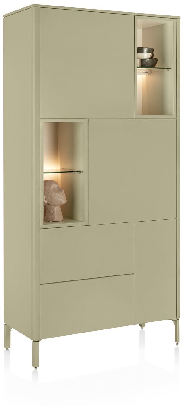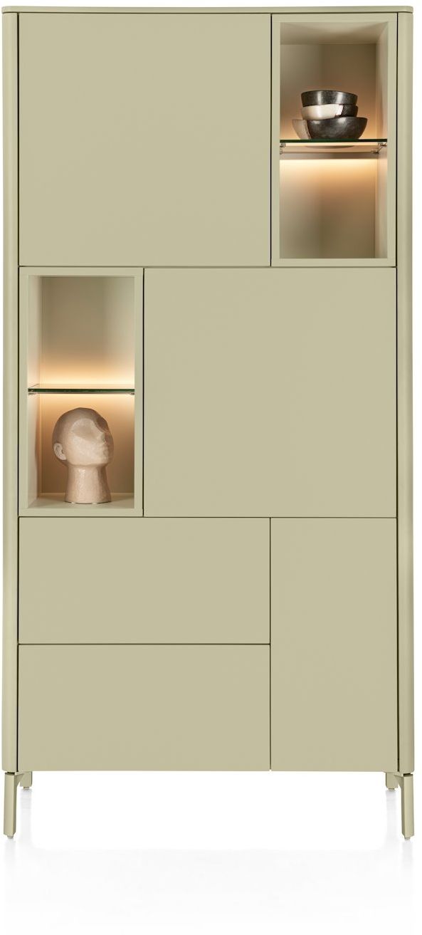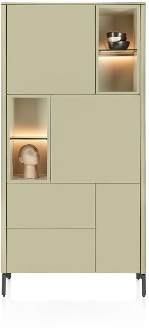 De XOOON Trenton bergkast is een stijlvolle en praktische kast die direct rust en structuur brengt in je interieur. Trenton heeft een modern design en een zachte groentint die de kast een warme en eigentijdse uitstraling geeft. Achter de strakke deuren berg je eenvoudig al je spullen op. Bij de open vakken kun je al jouw woonaccessoires presenteren. Door dit design wordt er een juiste balans gecreëerd tussen open en gesloten ruimtes, wat zorgt voor rust en sfeer.