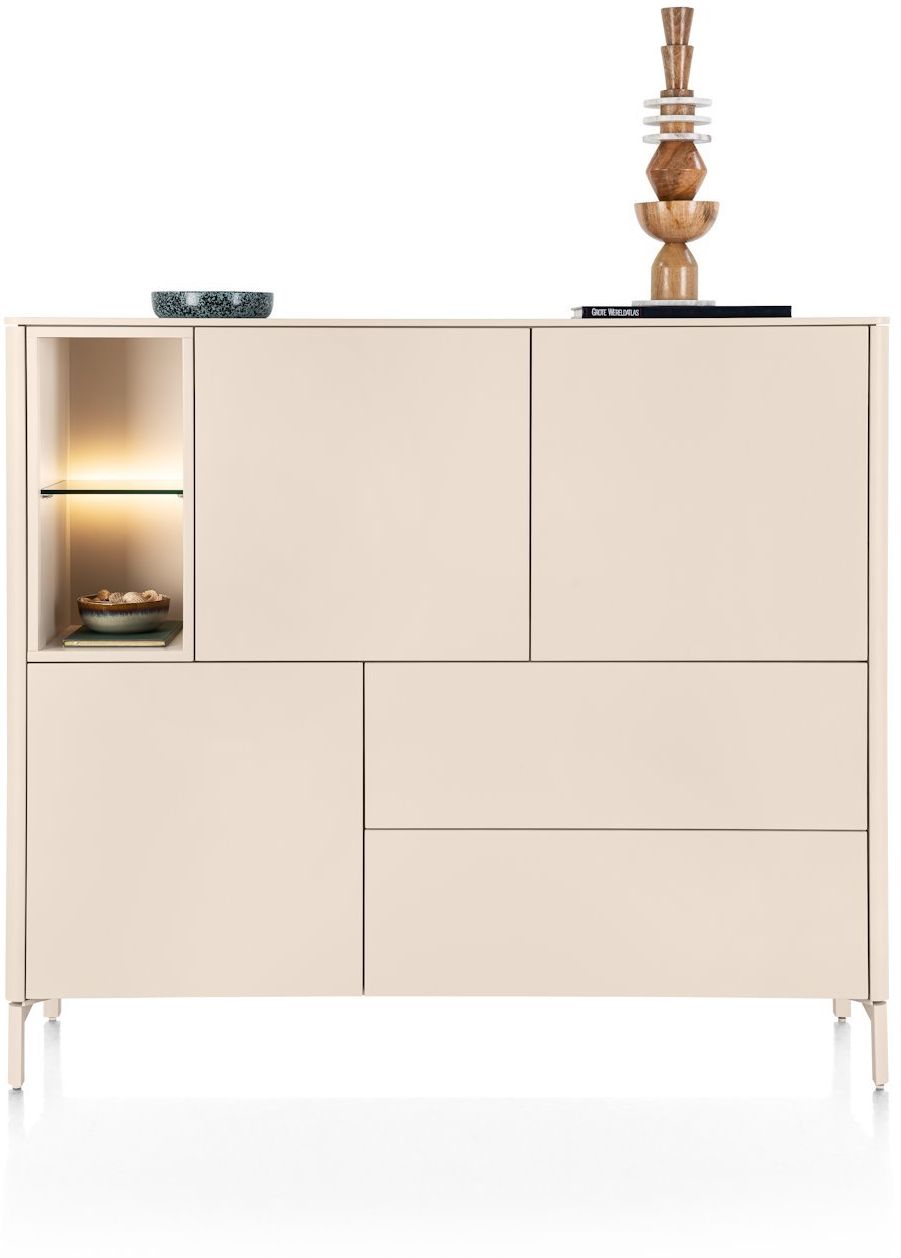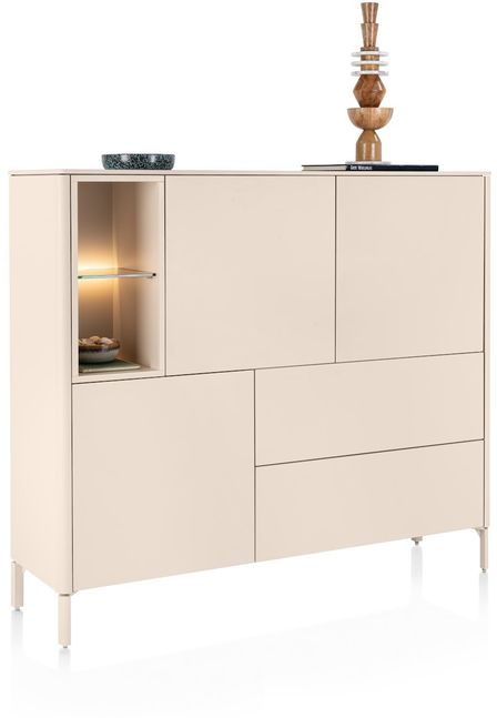 De XOOON Trenton dressette is een stijlvolle en functionele toevoeging aan je interieur, waarin strak design en praktische opbergruimte naadloos samenkomen. Met zijn zachte creme kleur en minimalistische vormgeving straalt deze dressette rust en elegantie uit, waardoor hij moeiteloos past in een modern of Scandinavisch interieur. Achter de deuren berg je spullen netjes op en het open vak met verlichting geeft extra sfeer wat ideaal is voor accessoires die gezien mogen worden.